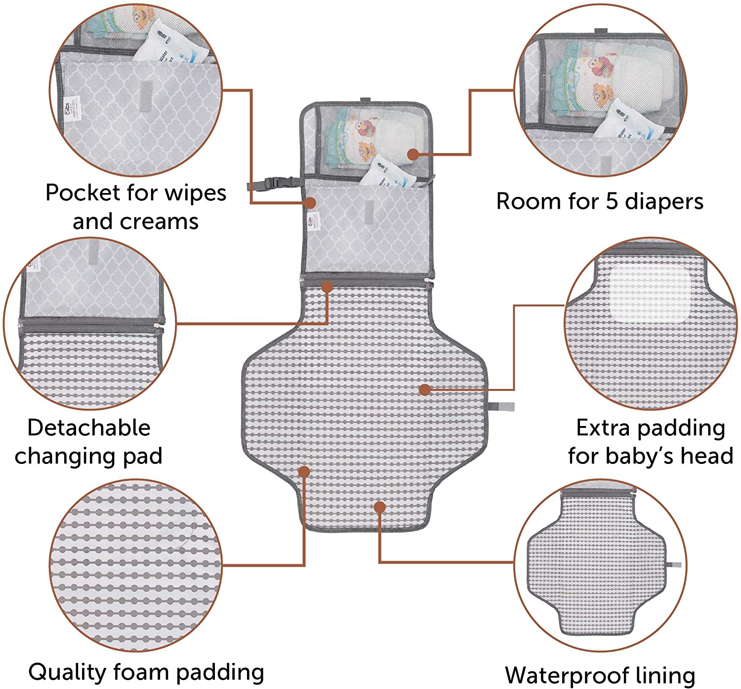 Melhore o conforto e a higiene do bebê Esses trocadores portáteis fornecem um espaço macio, de suporte e limpo para trocar a fralda ou a roupa do seu bebê ou para tirar uma soneca.