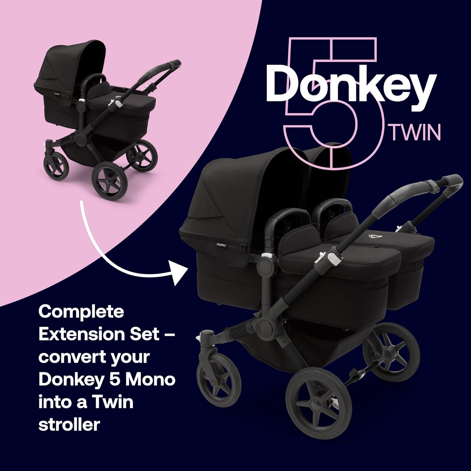 Conjunto de extensão Twin Bugaboo Donkey 5, converte seu Donkey 5 Mono em um carrinho duplo, lado a lado, design aprimorado, assento reversível e direção com uma mão, preto meia-noite
