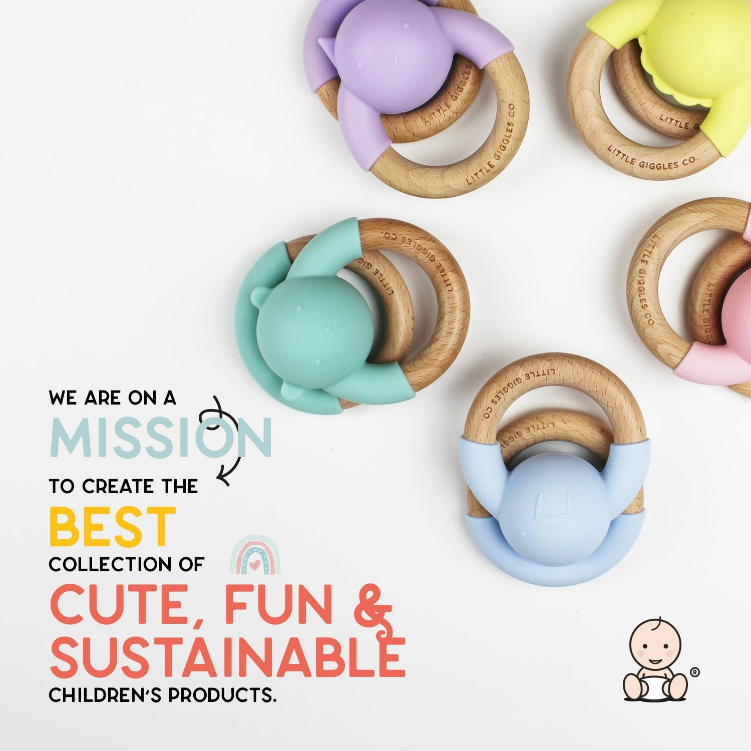 Conjunto de Mordedor de Mordedor de Mordida Little Giggles Co.® Walrus - Anel de Silicone para Mordida e Chocalho para Bebé, Brinquedos Sensoriais e de Dentição de Fácil Aderência, Artigos Essenciais e Presentes para Bebé Lindamente Feitos