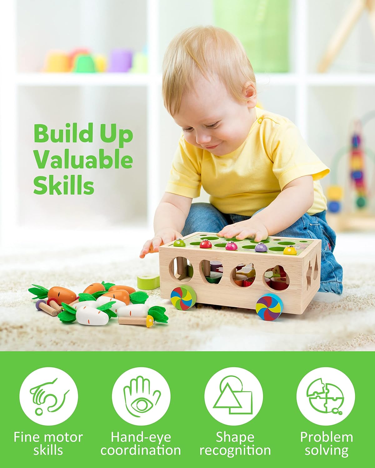 Coogam Brinquedos de motor fino Montessori para bebês, jogo de colheita de cenoura classificador de formato de madeira, brinquedo de presente educacional de aprendizagem pré-escolar para 3 4 5 anos de idade