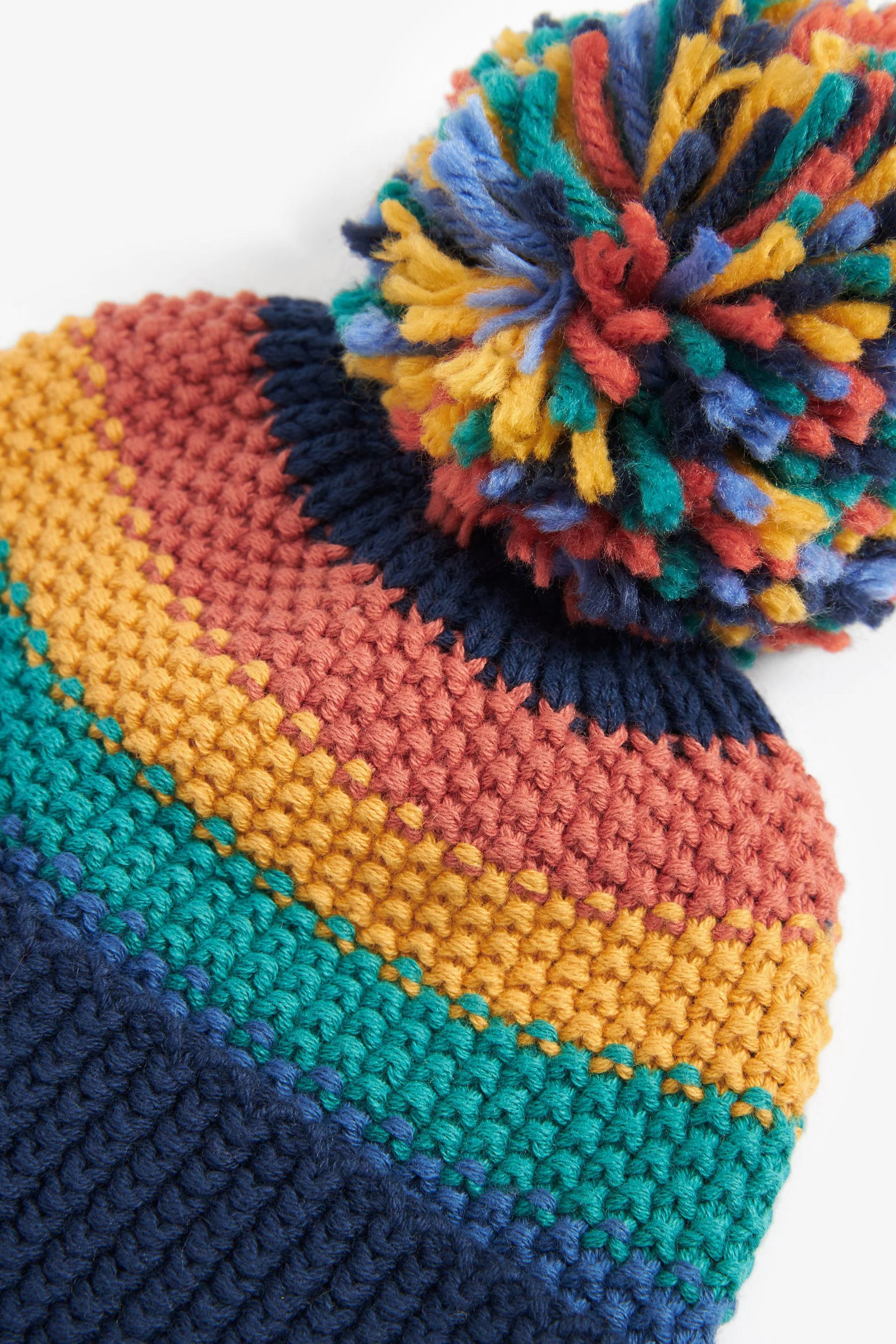 |BabyBoy| Touca pom pom de Malha / Azul Arco-íris - (0meses-2anos)