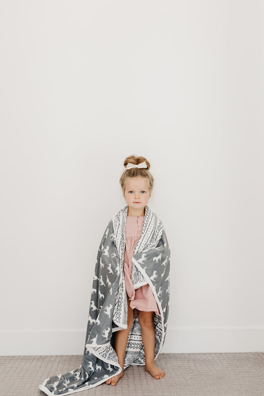Criado com o conforto do bebê em mente, esta colcha oferece três camadas de malha premium com maciez e elasticidade superiores. Generosamente dimensionado em 116,8 cm x 116,8 cm, foi projetado para crescer com o bebê desde a infância até a infância e além.