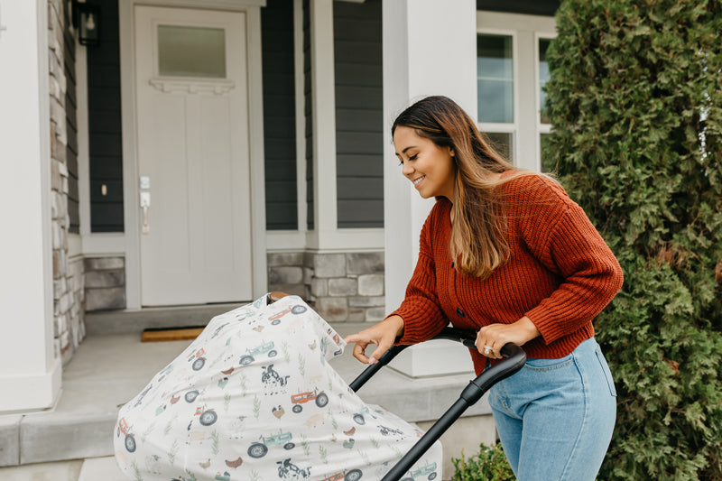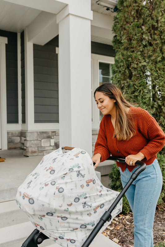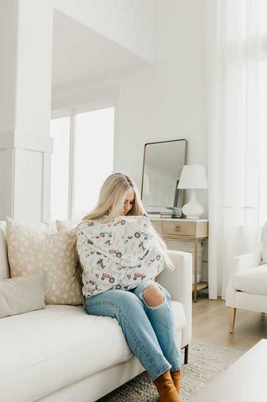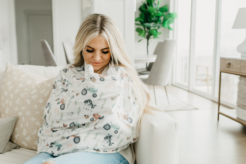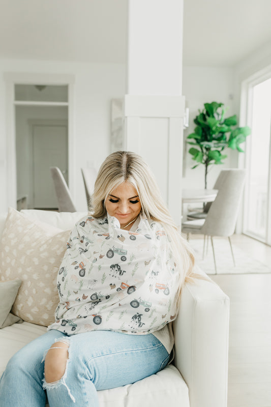Este item pode ser usado como uma capa de amamentação, capa de assento de carro, capa de assento de carrinho, capa de assento de cadeira alta ou cachecol infinito.