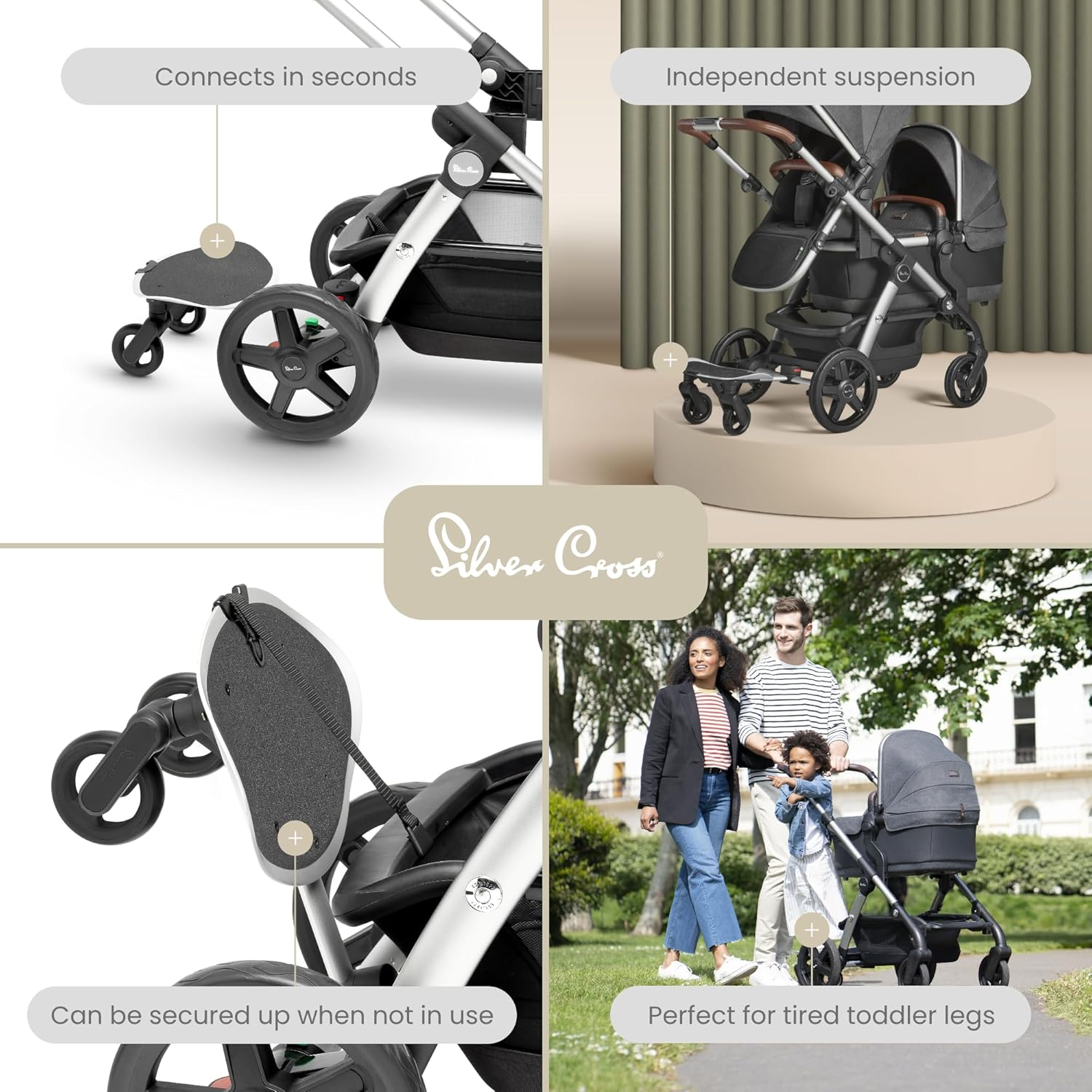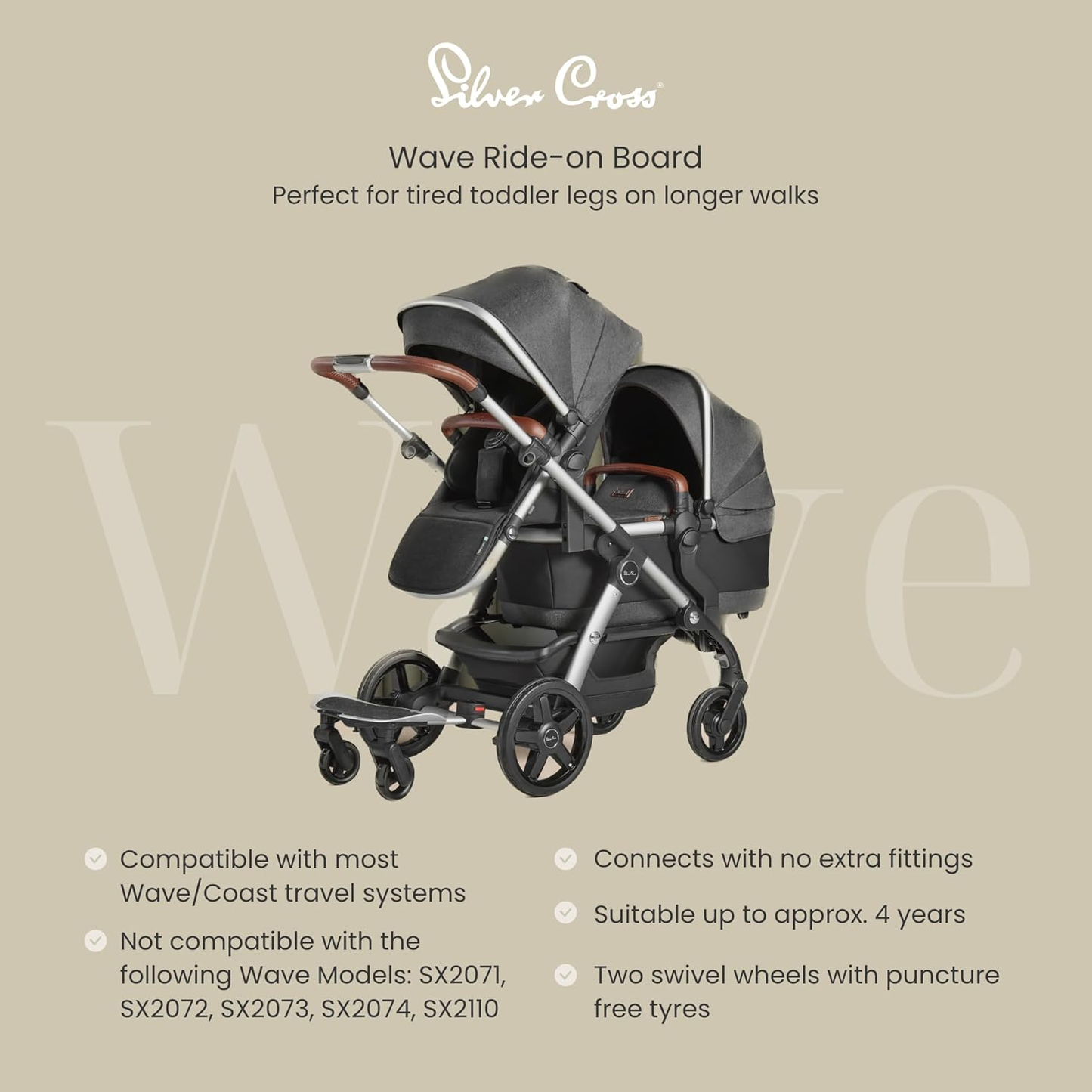 Silver Cross | Passeio de prancha Wave/Coast | Acessórios para carrinhos de bebé | Sistema de viagem compacto | Máxima aderência | Durável