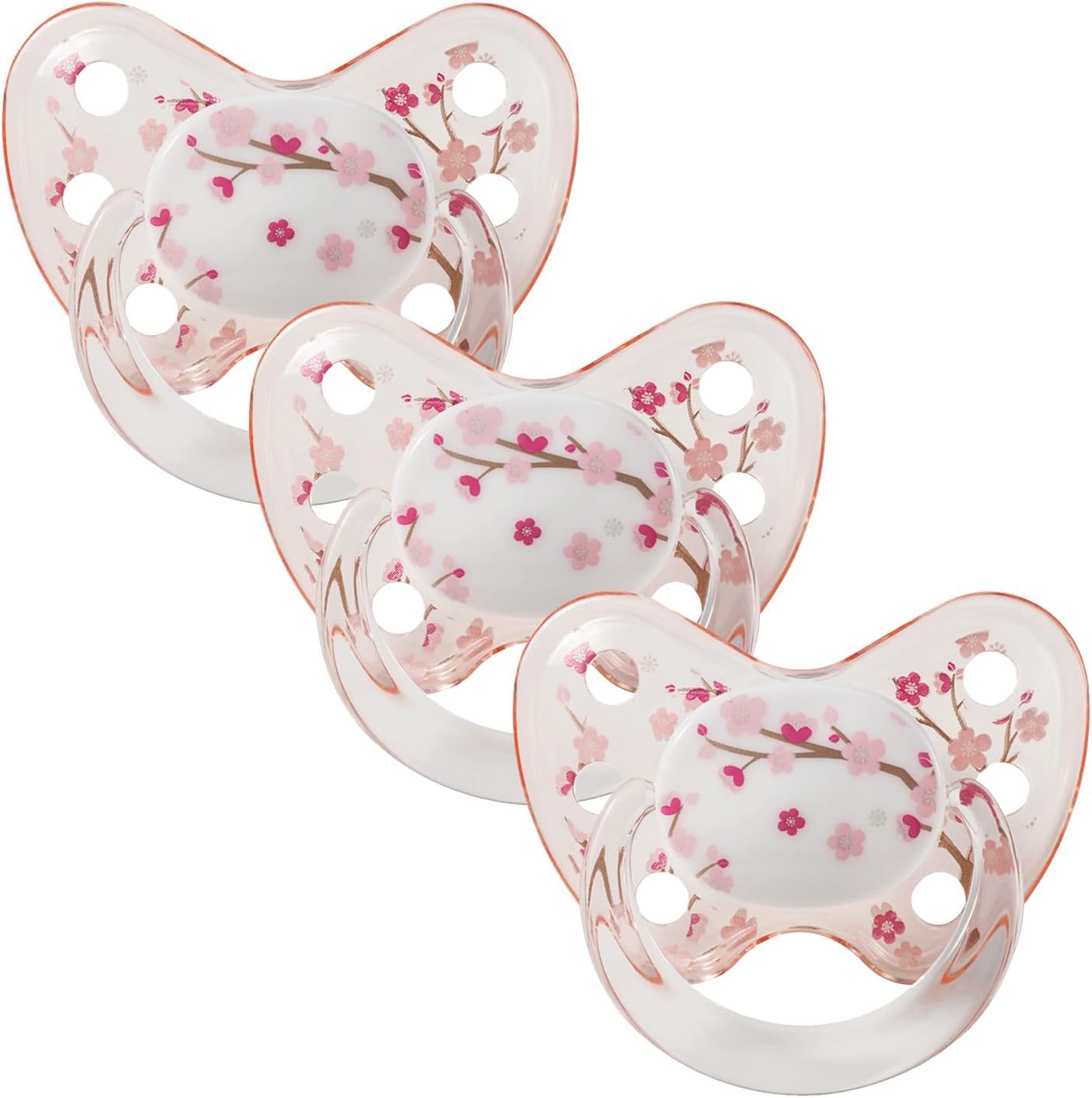 Dentista Conjunto de chupeta de silicone para com 3 - Tamanho 1 para 0 a 6 meses - Chupeta de silicone adequada para dentes e mandíbulas com degrau dentário - Manequim para bebê sem BPA - Fabricado na Alemanha - Design de flor de cerejeira
