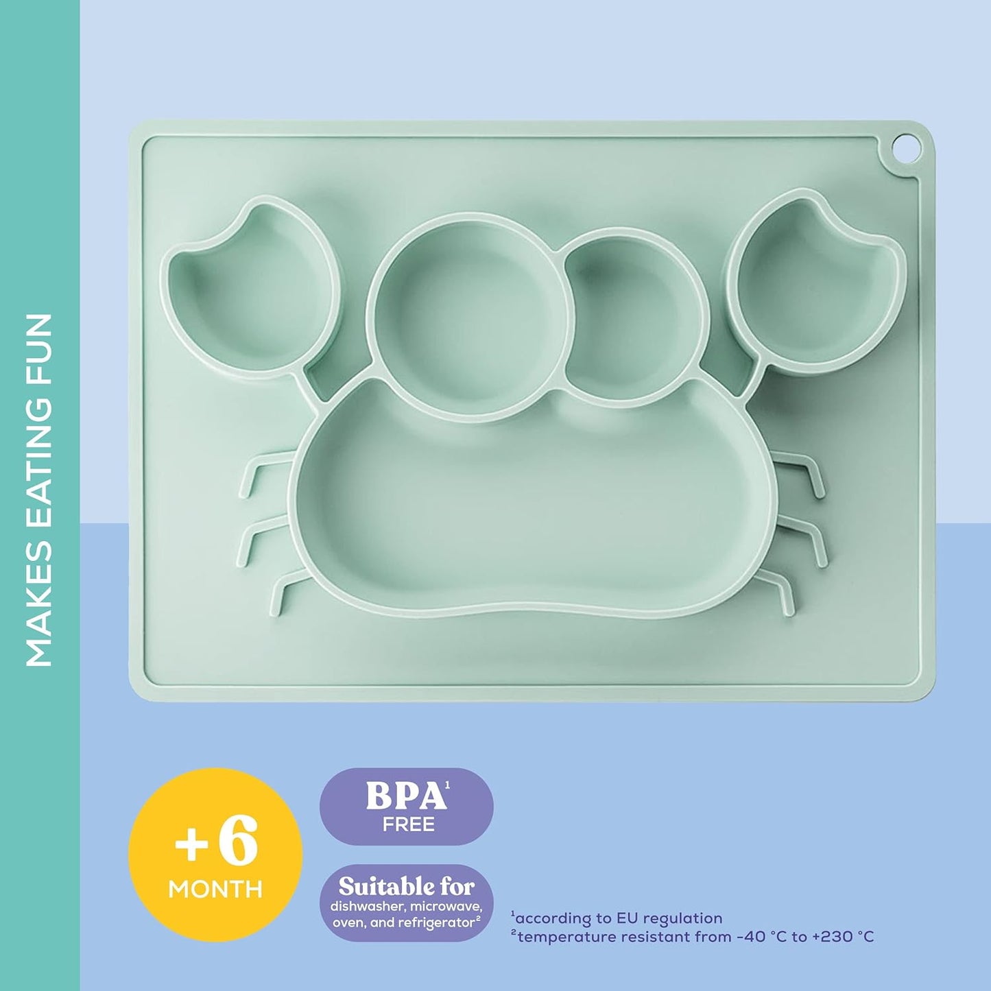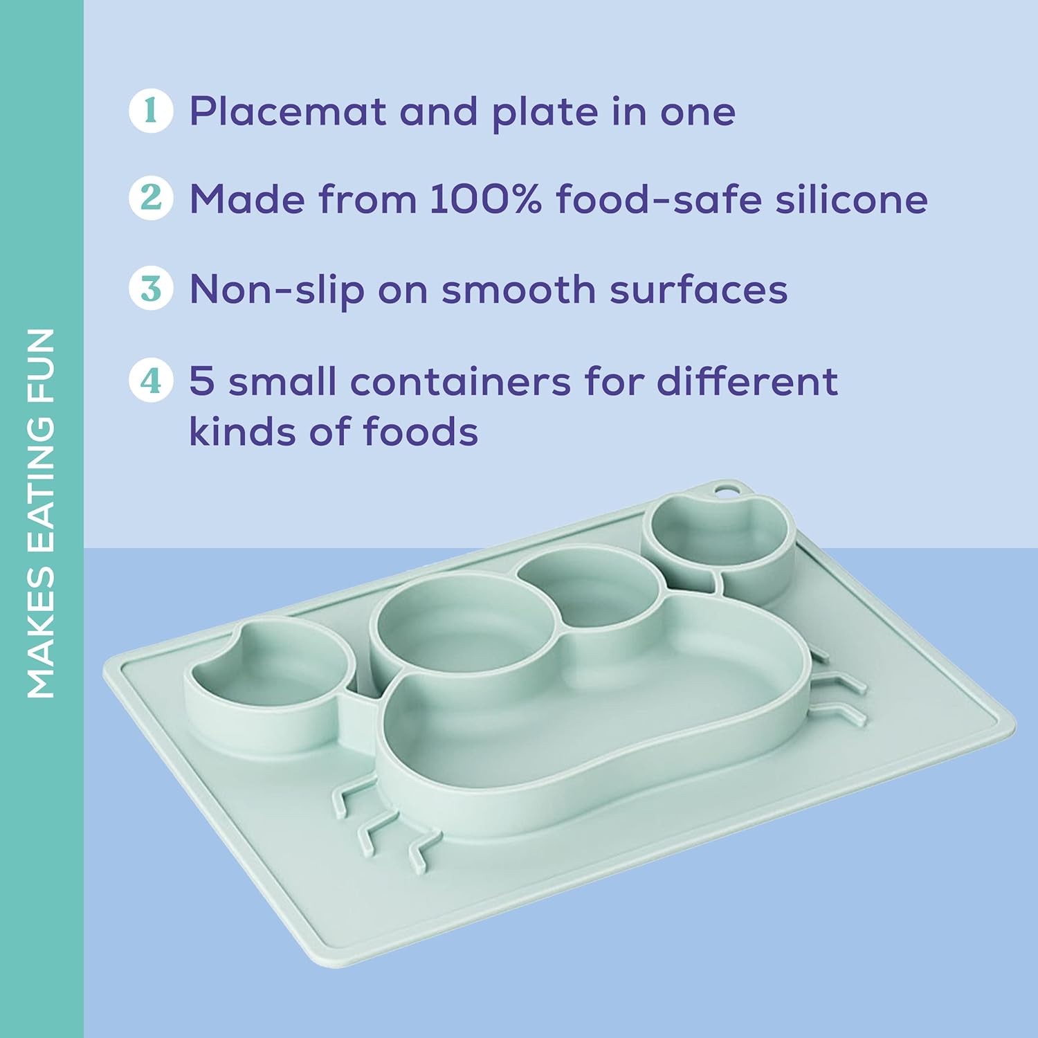 dentista Silicone Placemat - Prato de bebê 100% silicone de grau alimentício - Tapete de bebê de silicone antiderrapante - Seguro para micro-ondas, geladeira e forno - Sem BPA - Menta