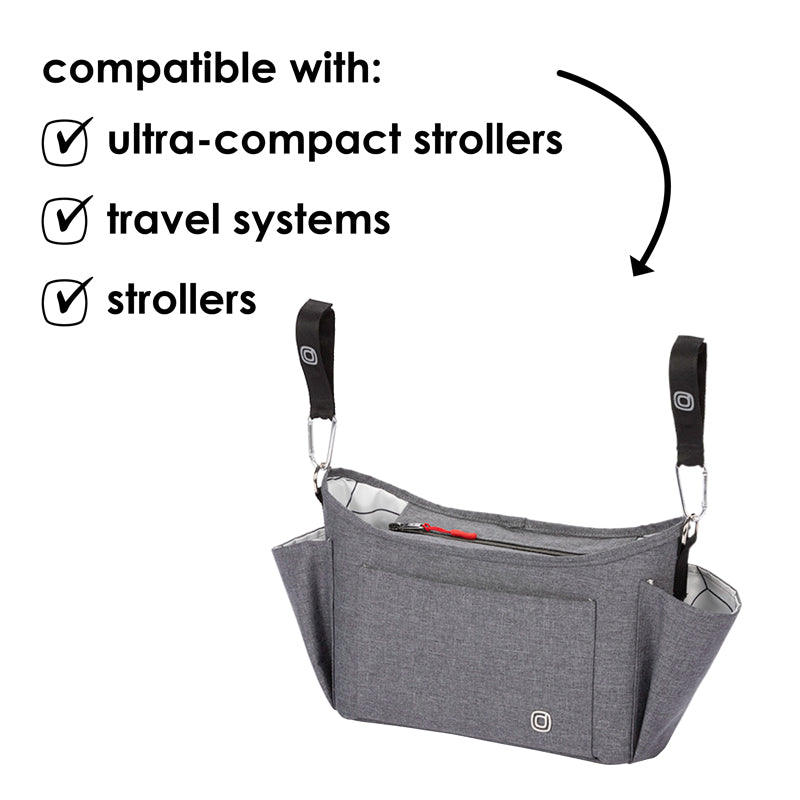 Passeie com estilo com este amigo de buggy com acabamento de luxo, compatível com todos os carrinhos e sistemas de viagem, inclui 4 suportes para bebidas, 2 bolsos com zíper, 2 clipes de buggy e uma alça de transporte removível para que você também possa usar como bolsa transversal.