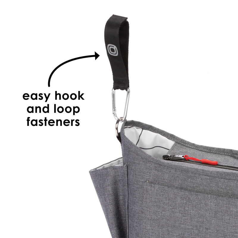O acessório fácil de gancho e laço se conecta facilmente às alças do carrinho e também pode ser usado independentemente como clipes de buggy.
