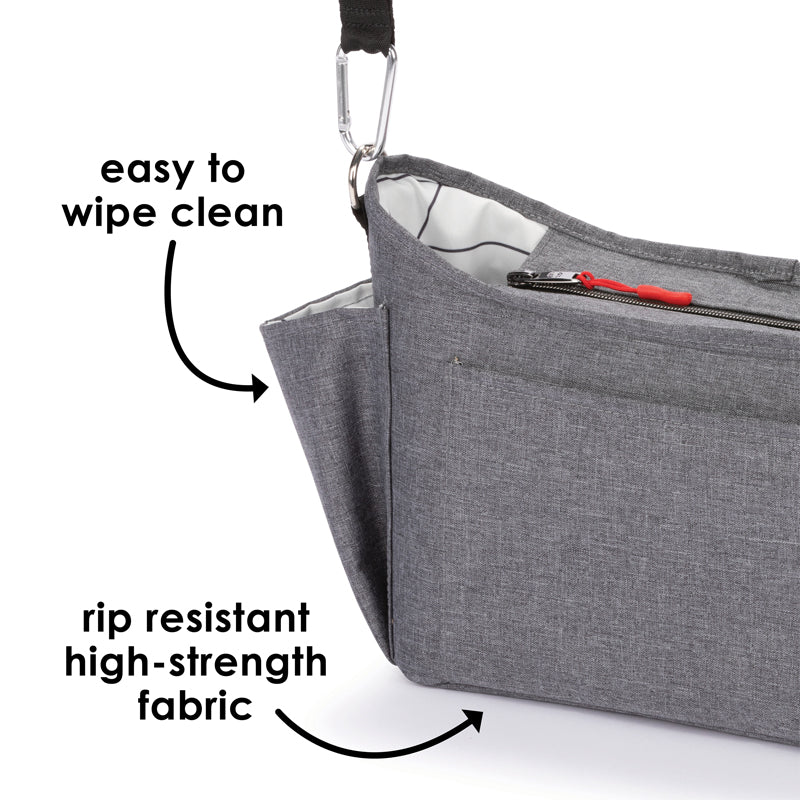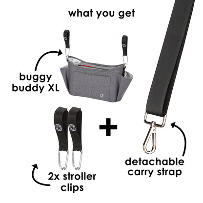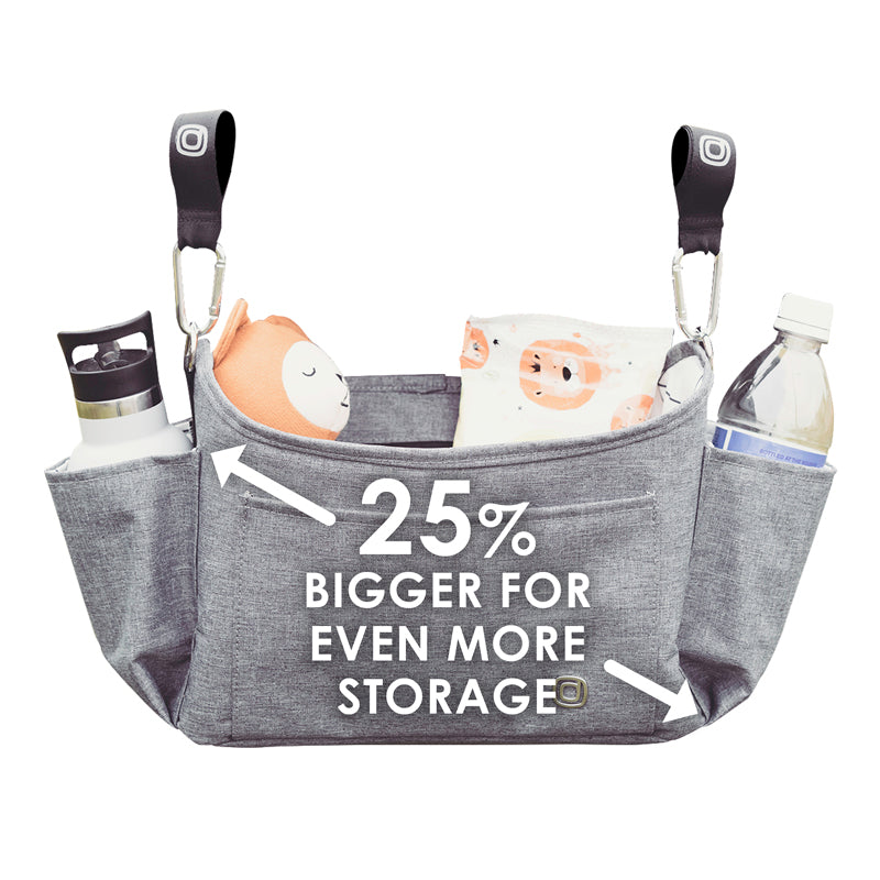 O Diono Buggy Buddy XL é o novo organizador de carrinho 8 em 1 agora 25% maior que o premiado Buggy Buddy, com muito espaço para manter seus itens essenciais diários organizados e ao alcance.