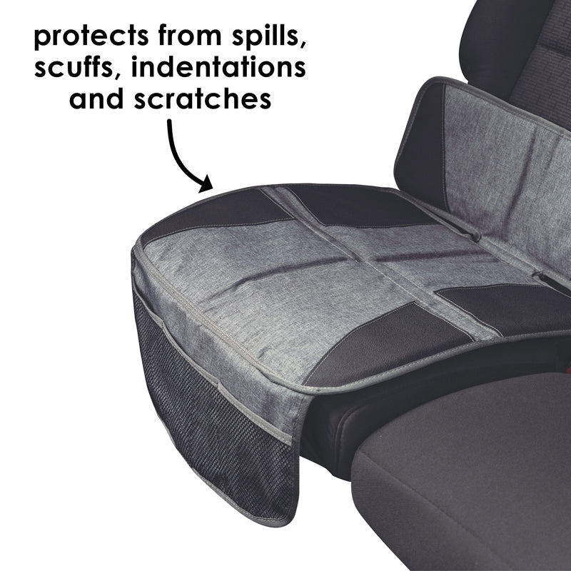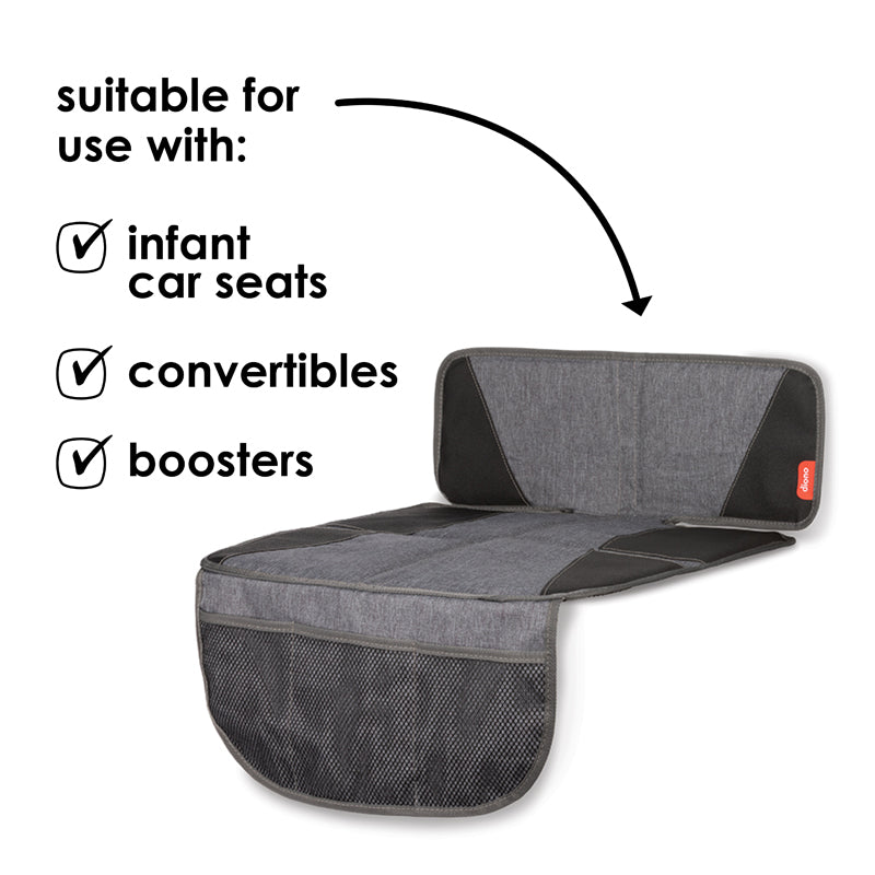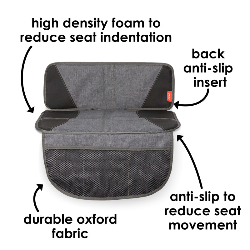 Adequado para uso com assentos infantis, conversíveis e boosters, protege contra derramamentos, arranhões, entalhes e arranhões. O painel traseiro atua como uma inserção antiderrapante enquanto a base também é antiderrapante para reduzir o movimento do assento.