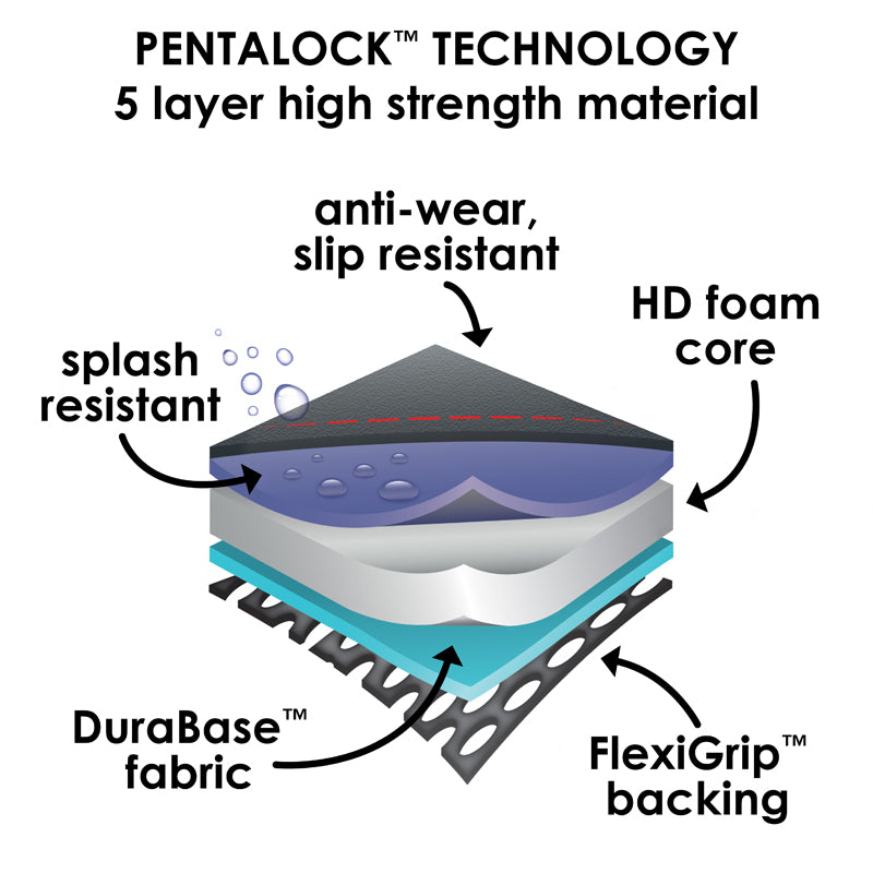 Previna e proteja com a tecnologia Pentalock, um material de alta resistência de 5 camadas que é resistente à água para proteger contra derramamentos e desgaste geral, garantindo aderência extra para seu assento de carro.