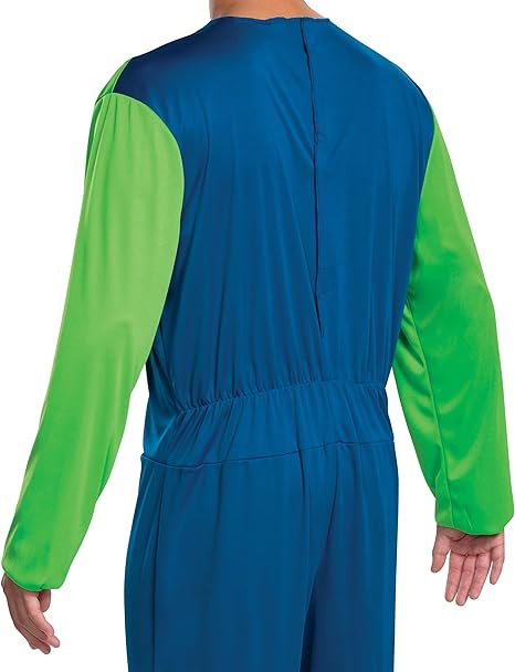 - O traje oficial Disguise Super Mario Luigi inclui macacão Luigi azul e verde, chapéu e bigode falso autoadesivo.