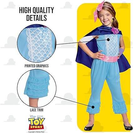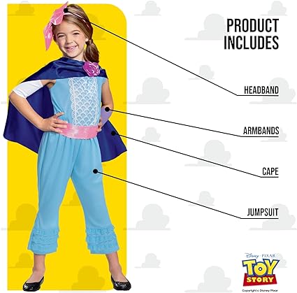 - Reúna seus colegas brinquedos com esta fantasia oficial de Toy Story Bo Peep da Disney; inclui macacão, capa, bandana e braçadeiras.
