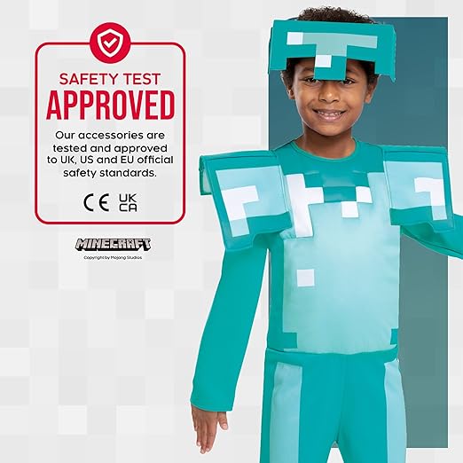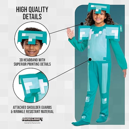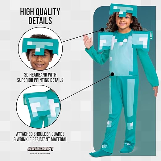 DISGUISE Fantasia oficial de Minecraft para crianças, armadura de diamante Fantasia de Minecraft, roupa de fantasia, Halloween, aniversário, dia mundial do livro, fantasias para meninos e crianças