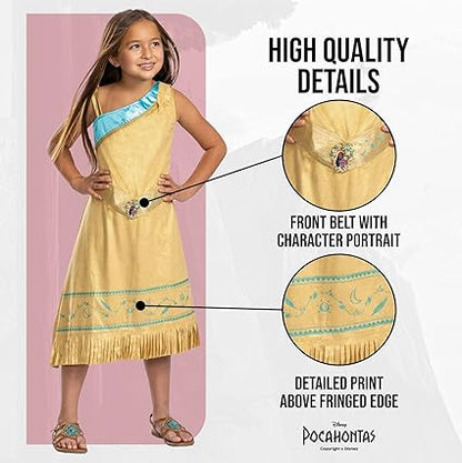 DISGUISE Traje oficial de luxo Pocahontas da Disney para crianças, traje de princesa nativa americana para crianças disponíveis nos tamanhos S e M