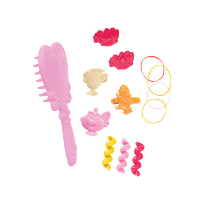 Use sua criatividade e os grampos de cabelo fornecidos para dar a Belle uma reforma mágica da Disney!