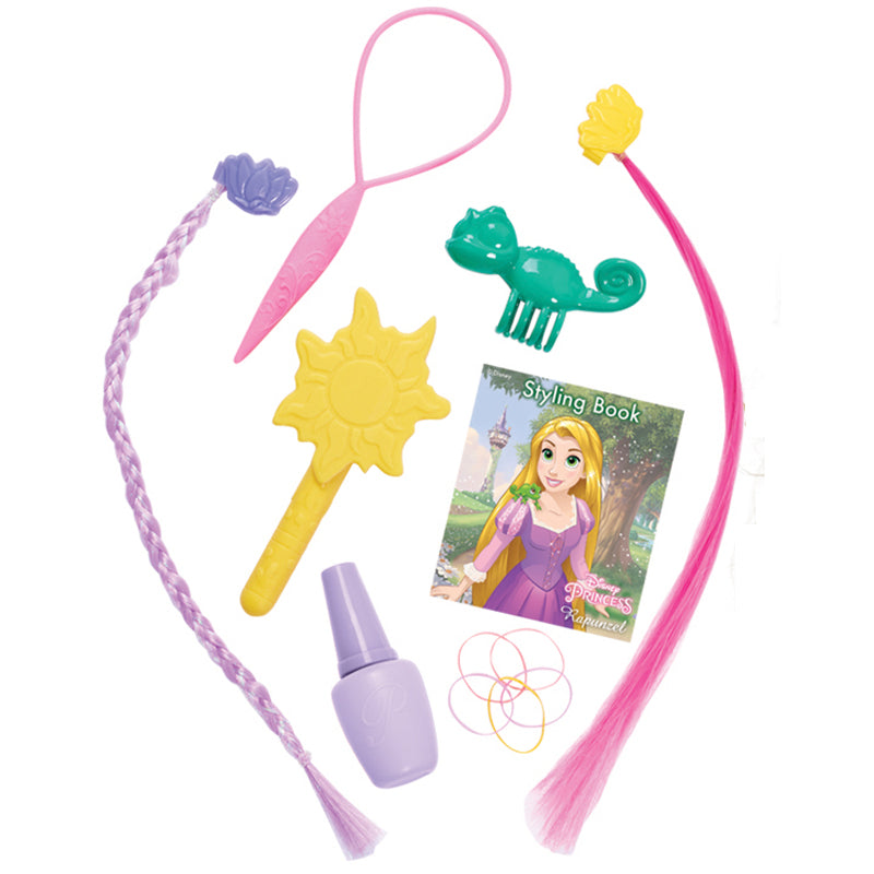 Estilize o cabelo comprido da Disney Rapunzel para cima ou para baixo para um dia de conto de fadas ou um look de noite encantado As opções de penteados são tão infinitas quanto sua imaginação com a escova de cabelo incluída e o livreto de estilo! O conjunto ainda vem com uma ferramenta de modelagem de cabelo que ajuda a criar penteados elegantes para princesa! Seu filho vai adorar usar as adoráveis extensões de cabelo com presilhas para decorar os cachos brilhantes e esvoaçantes de Rapunzel. As crianças também podem usar extensões e acessórios de cabelo em seus próprios cabelos para se divertir ainda mais com a moda!