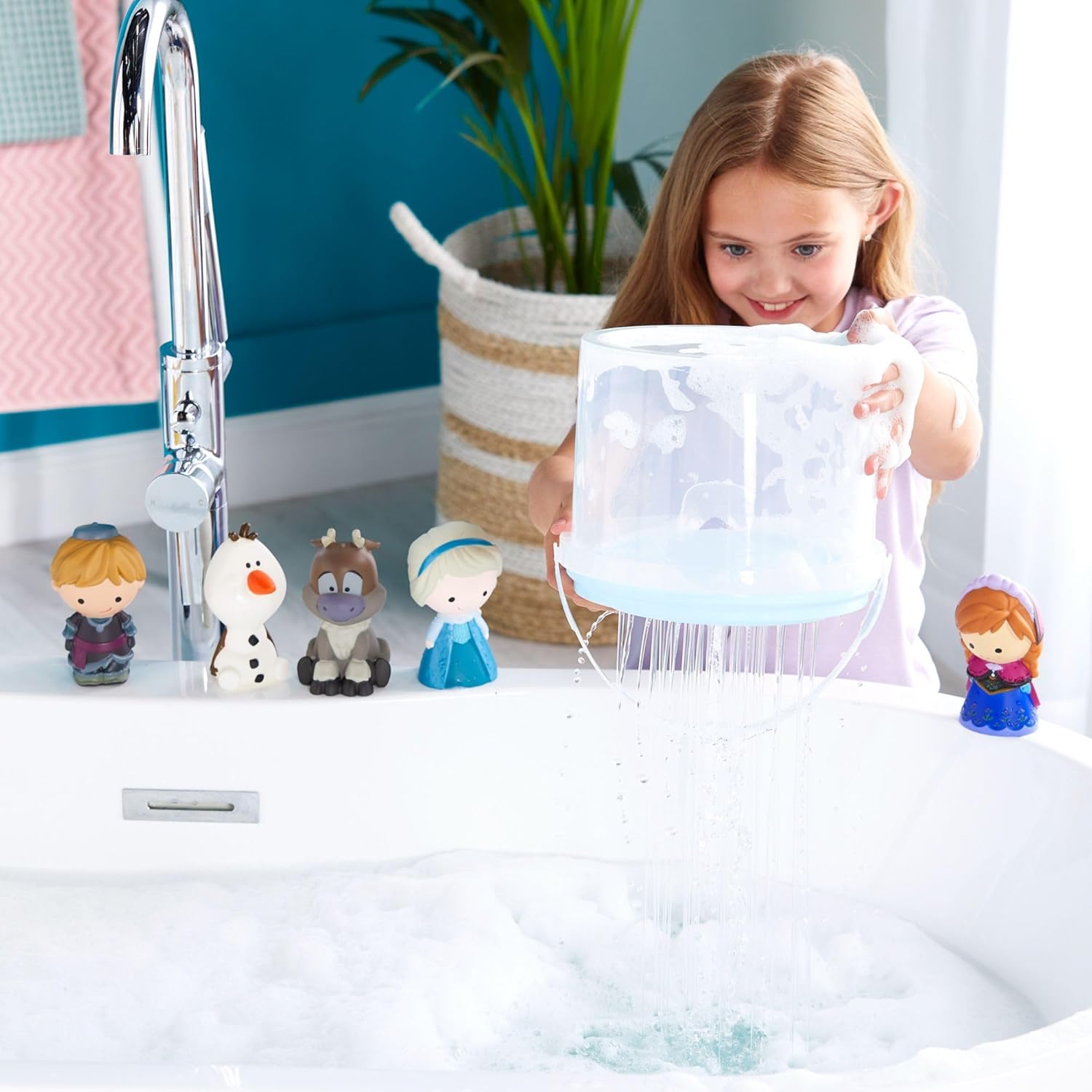 Disney Store Conjunto oficial de brinquedos de banho Frozen, conjunto de 5 peças, inclui Anna, Elsa, Olaf, Sven e Kristoff, brinquedos Frozen com balde de armazenamento, adequado para 6 meses ou mais