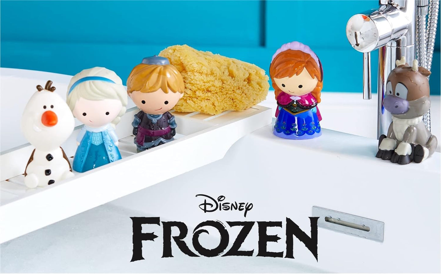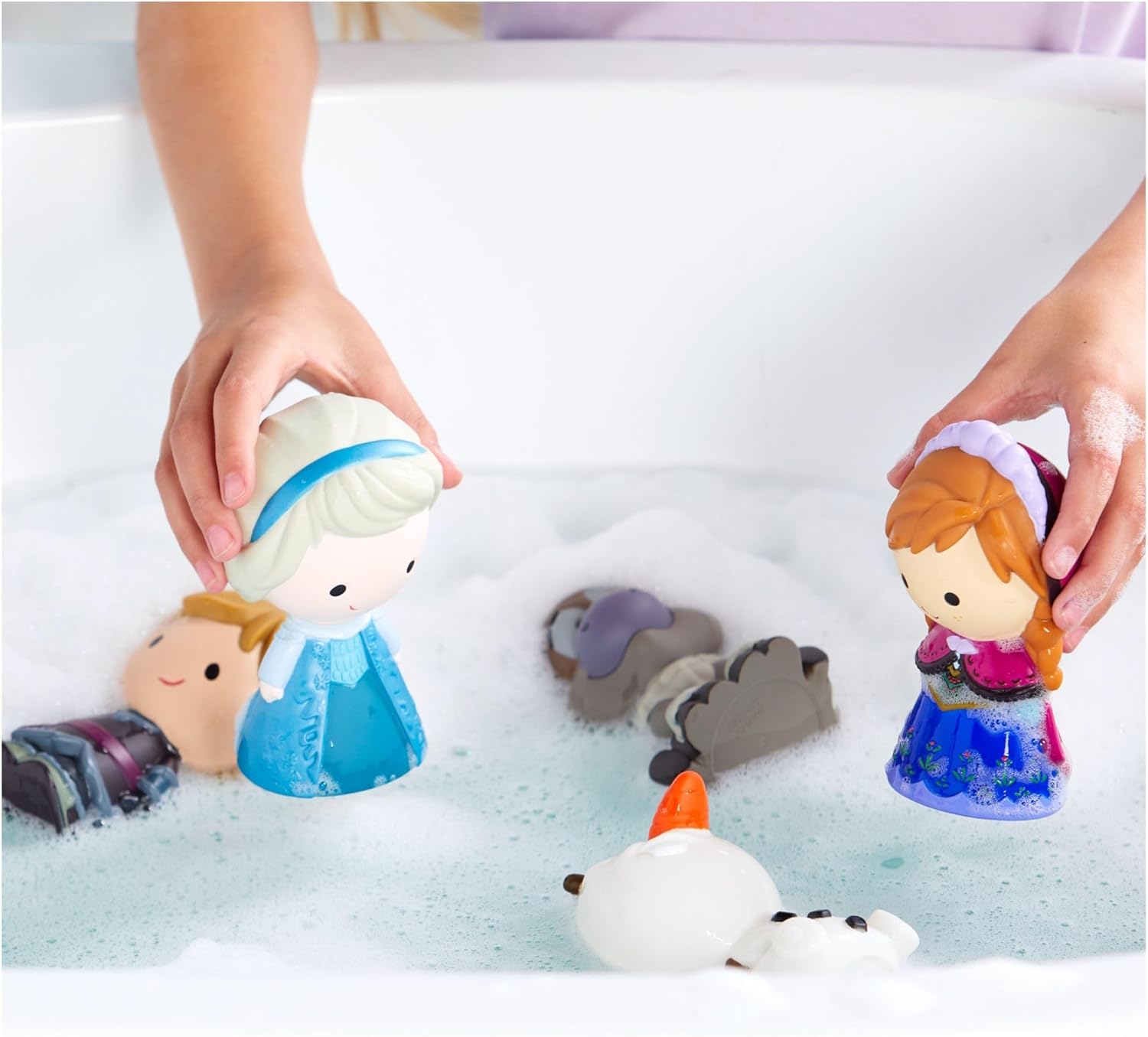 - Encantadora aventura no banho: delicie-se com a magia de Frozen em cada banho com nosso conjunto de 5 peças com os favoritos da realeza Anna, Elsa, Olaf, Sven e Kristoff como brinquedos de banho, perfeitos para brincadeiras aquáticas envolventes.