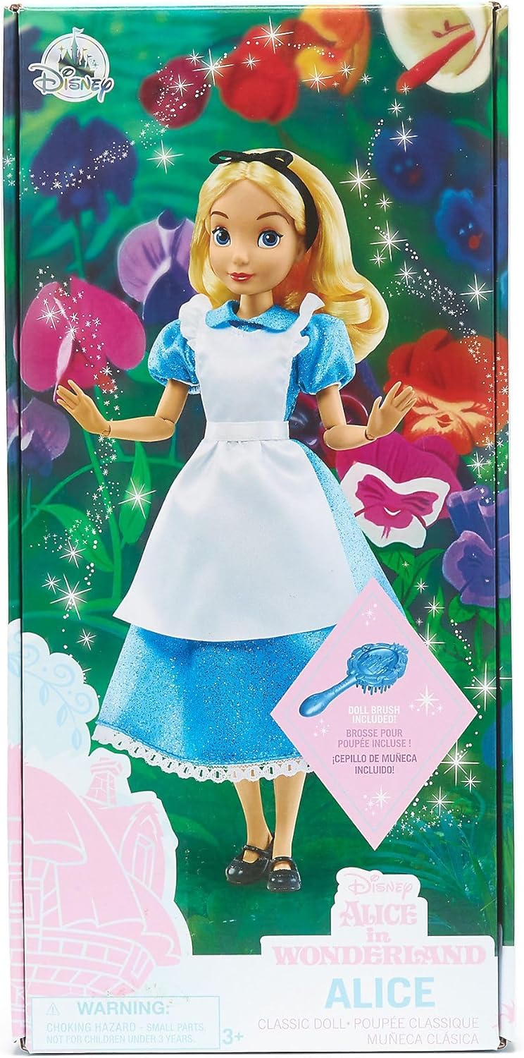 - Seu pequeno fã da Disney pode partir em aventuras curiosas no País das Maravilhas com esta boneca clássica Alice! Capturando maravilhosamente o personagem curioso, a boneca articulada apresenta cabelos enraizados realistas, um vestido de cetim e vem com uma linda escova de boneca