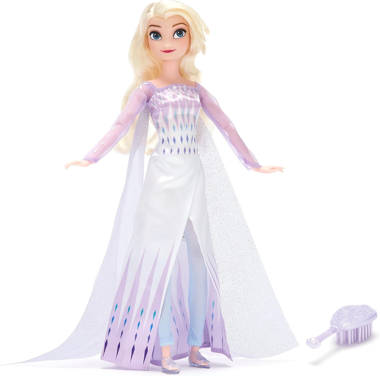 Disney Store Oficial Elsa Classic Doll, Frozen, 29cm/11”, Boneca Princesa Disney Totalmente Articulável em uma Roupa Azul Gelo, Inclui Escova de Cabelo de Brinquedo - Adequado para Idades 3+
