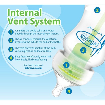 - Juntamente com o sistema de ventilação interna anti-cólica, eles oferecem uma experiência confiável de alimentação com mamadeira que torna a mamadeira do Dr. Brown's a mamadeira número 1 recomendada por pediatras nos EUA.