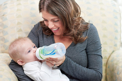 O novo Dr Brown's Options ™ - a primeira mamadeira conversível que pode ser usada com ou sem o sistema de ventilação verde. O exclusivo sistema de ventilação verde interno continua a criar alimentação 100% sem vácuo, o que é clinicamente comprovado para ajudar a reduzir a cólica relacionada ao vento. É isso que faz com que 9 de 10 profissionais de saúde recomendem o Dr. Brown para o alívio da cólica relacionada ao vento. À medida que o bebê se torna mais desenvolvido, a mamadeira pode ser usado sem o sistema de ventilação verde para funcionar mais como uma mamadeira convencional com bico. O novo bico com desenho recortado da Br Brown permite que o ar saia pela garrafa quando o sistema de ventilação verde não é usado para quando a alimentação do bebê é desenvolvida ou quando os pais querem apenas a conveniência de uma garrafa com bico.
