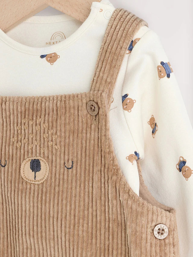 |BabyBoy| Conjunto De Macacão e Macacão De Veludo Cotelê Para Bebê Urso Marrom Bege (0 meses a 2 anos)