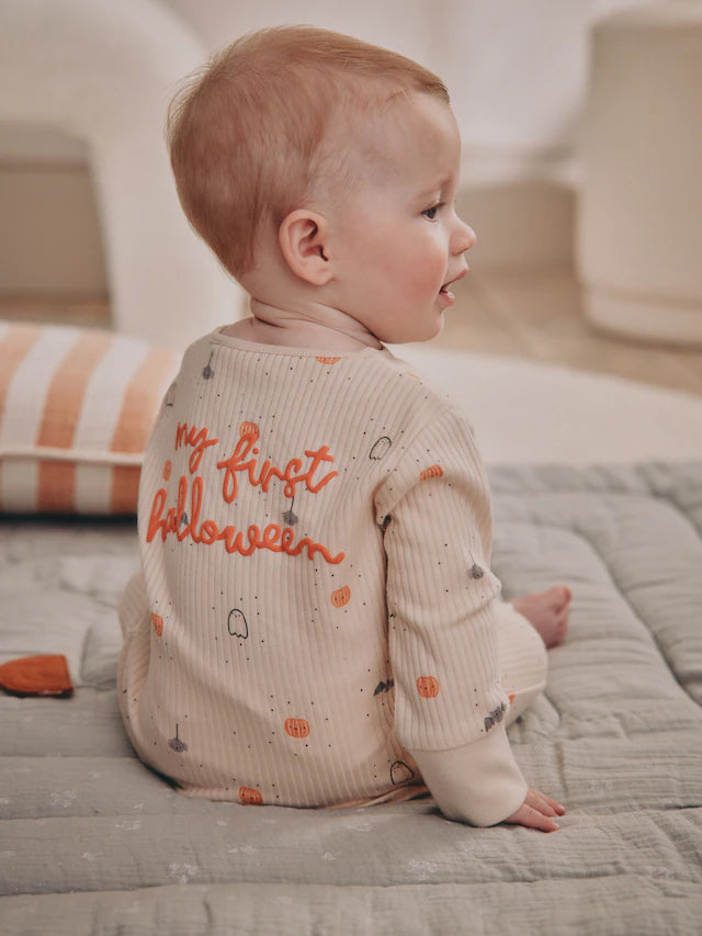 |BabyBoy| Macacão De Dormir Sem Pé Ecru Baby My First Halloween Com Zíper Bidirecional (0-18 meses)