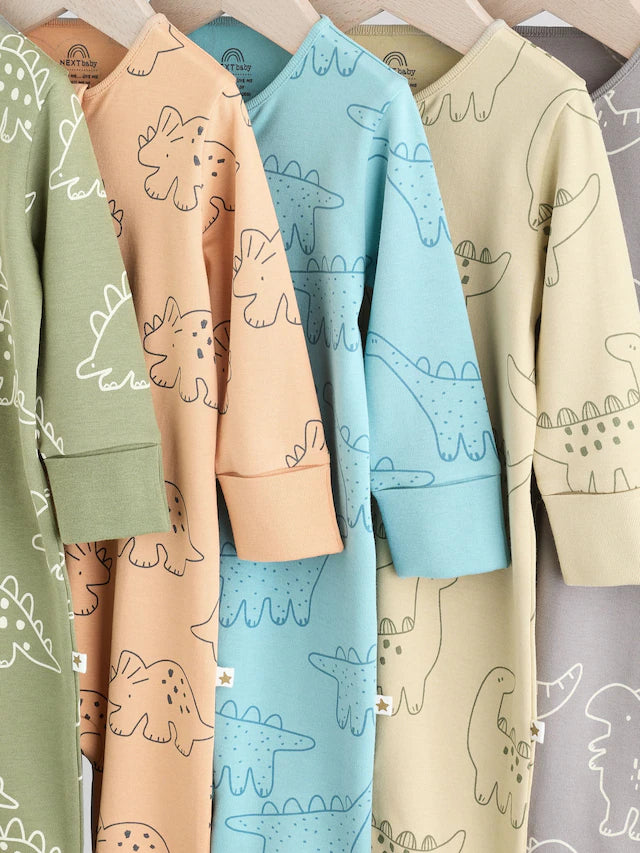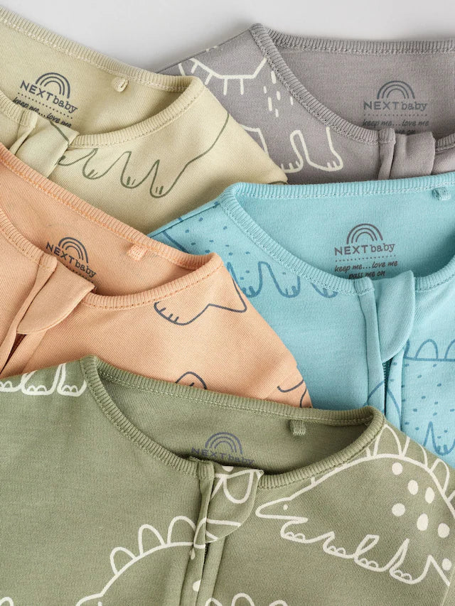 |BabyBoy| Macacão Sem Pés Com Zíper Bidirecional Azul/Verde Para Bebês, Pacote com 5 (0 meses a 3 anos)