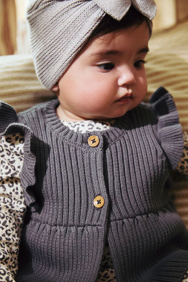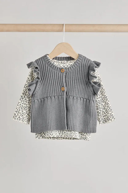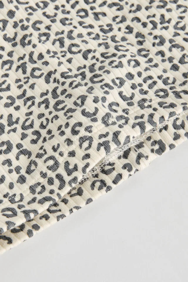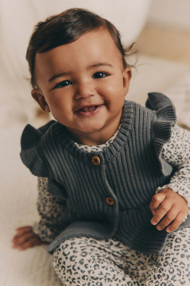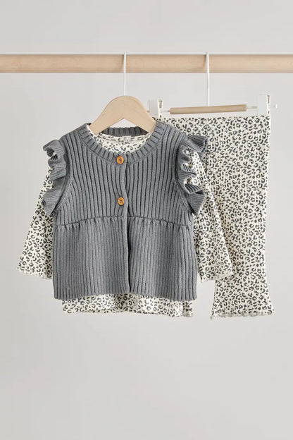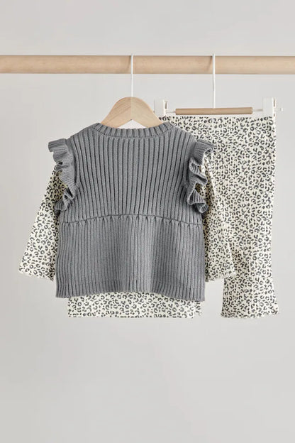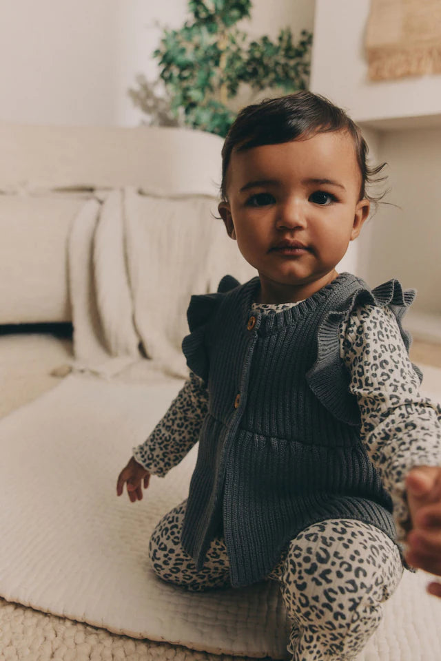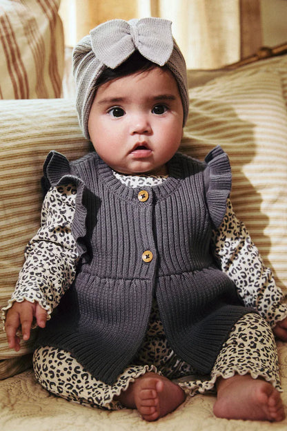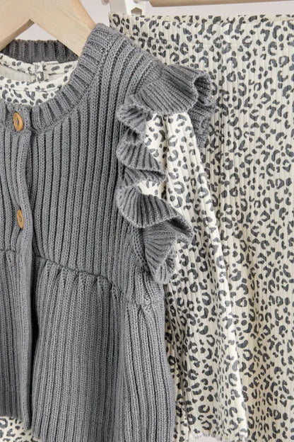 |BabyGirl| Colete e Leggings De Malha Com Estampa De Leopardo Cinza Para Bebê 100% Algodão manga comprida