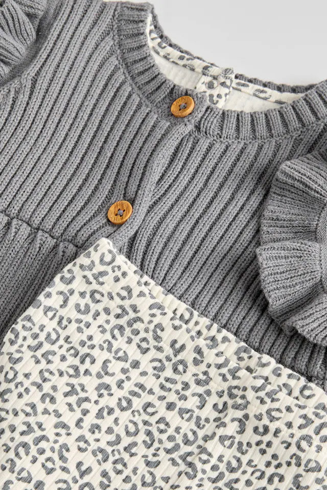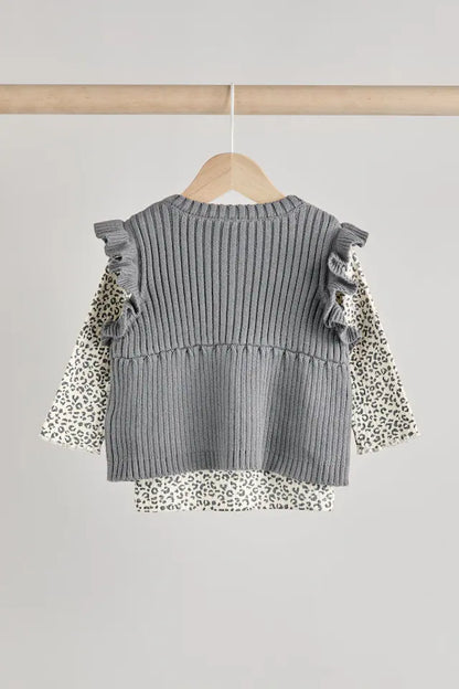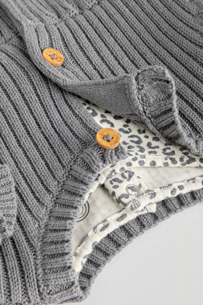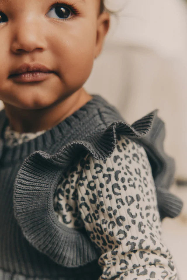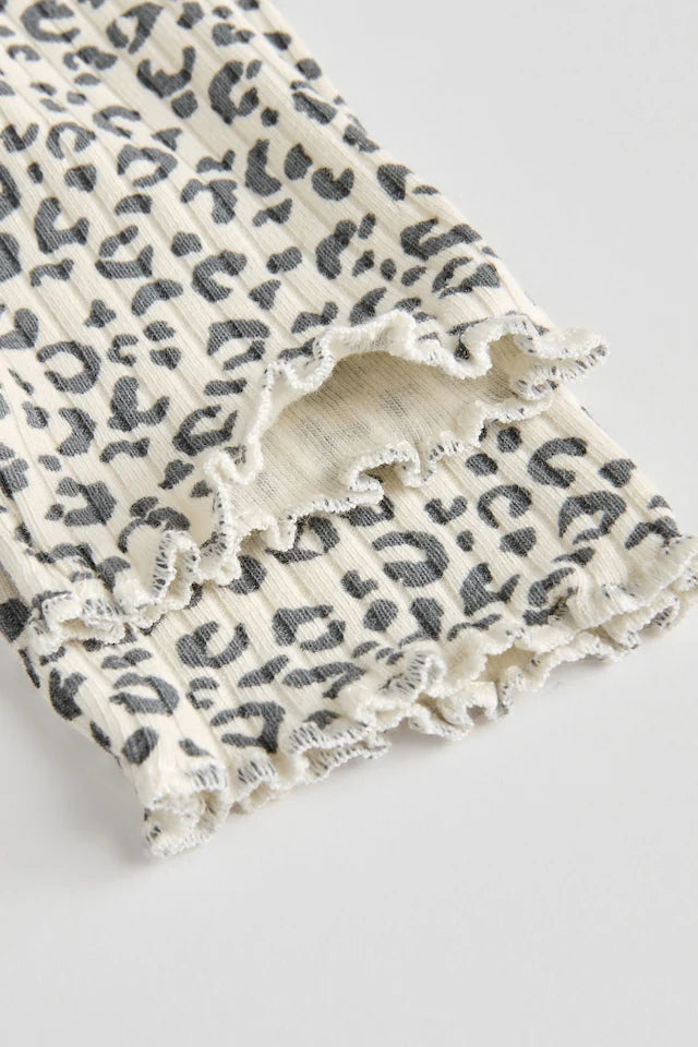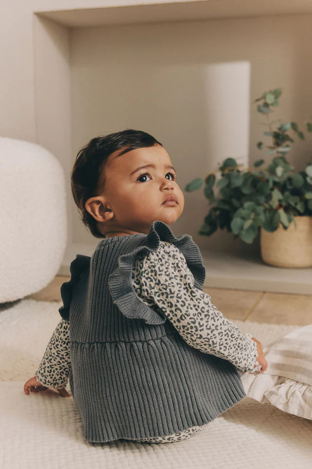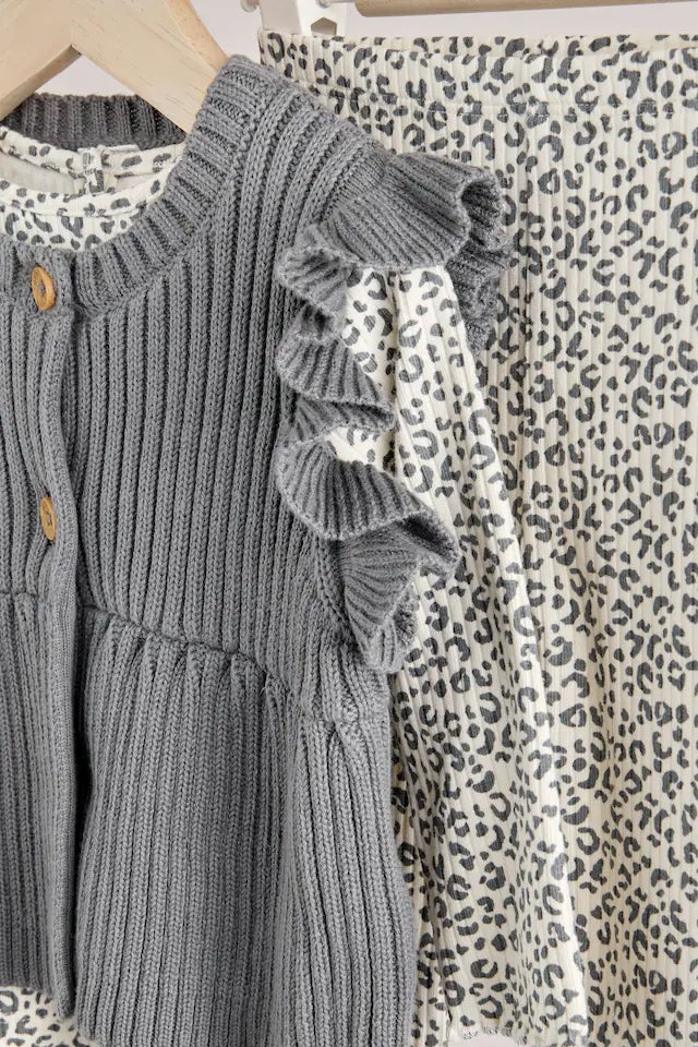 |BabyGirl| Colete e Leggings De Malha Com Estampa De Leopardo Cinza Para Bebê 100% Algodão manga comprida