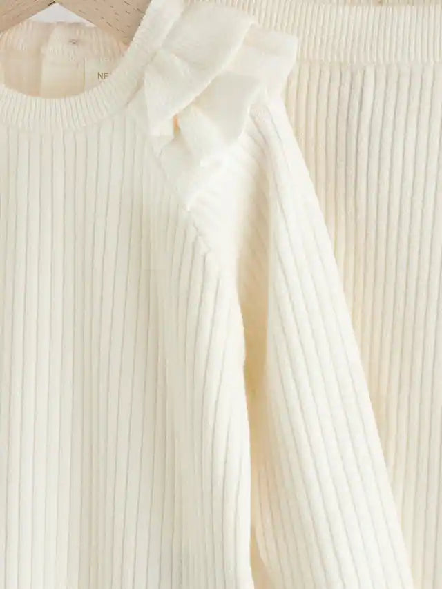 |BabyGirl| Conjunto De 2 Peças De Suéter e Legging De Tricô Creme Para Bebê (0 meses a 3 anos)