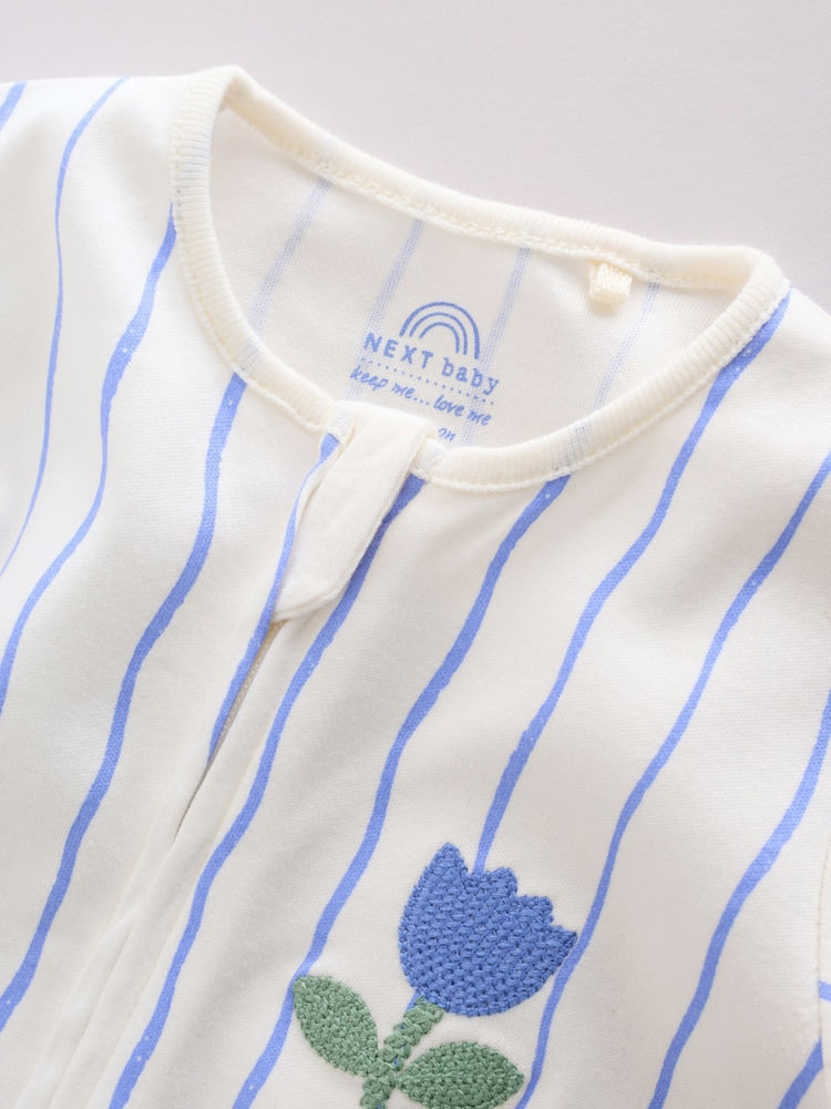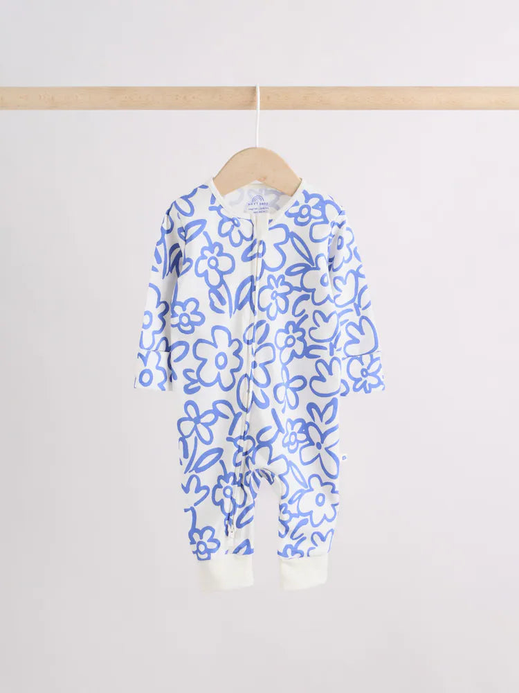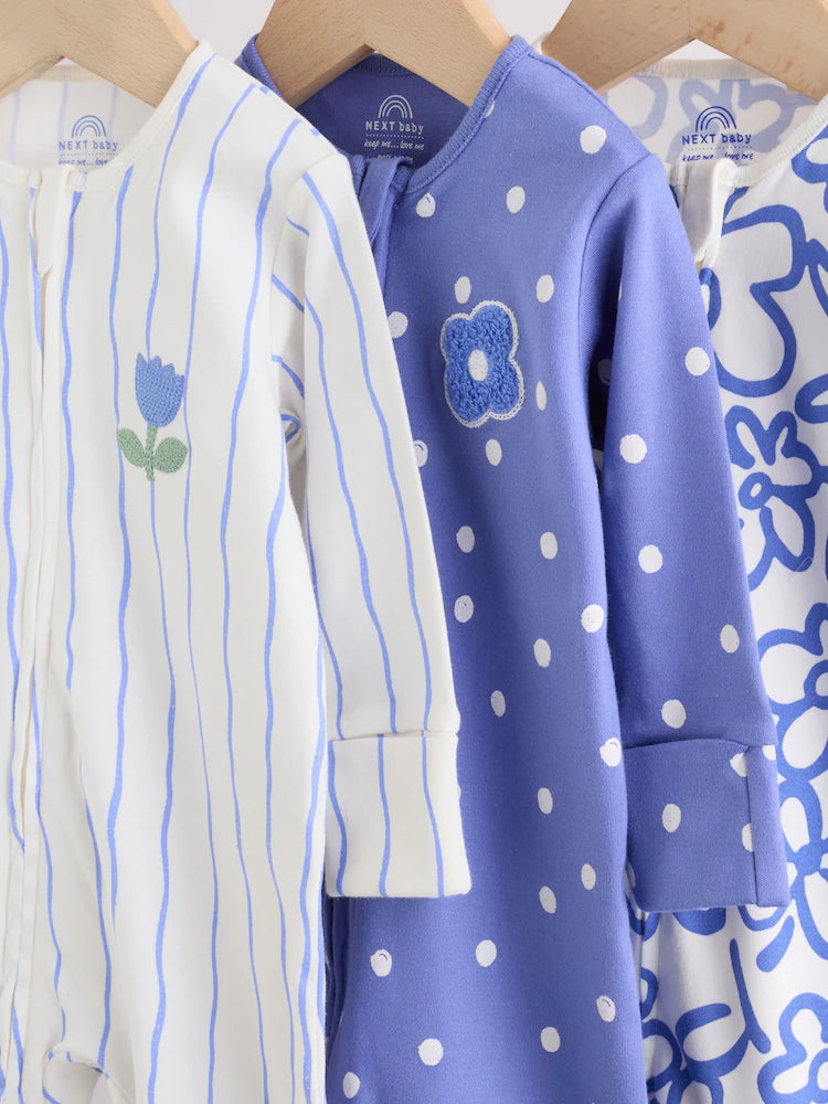 |BabyGirl| Conjunto De 3 Macacões De Dormir Azuis Com Zíper Duplo Para Bebês (0 meses a 3 anos)