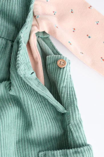 |BabyGirl| Conjunto De Macacão Para Bebê De Veludo Cotelê Azul-Petróleo Com Perna Larga e body de manga comprida (0 meses a 2 anos)