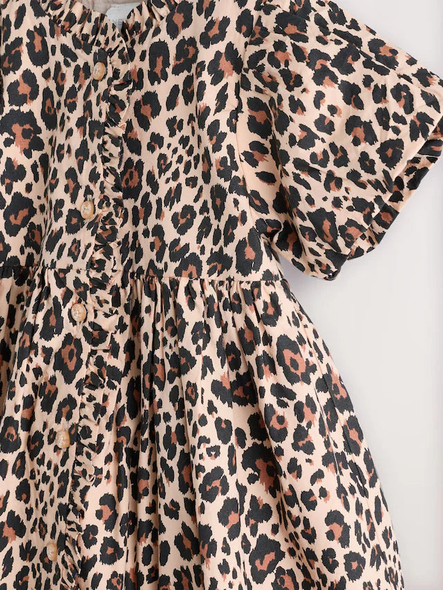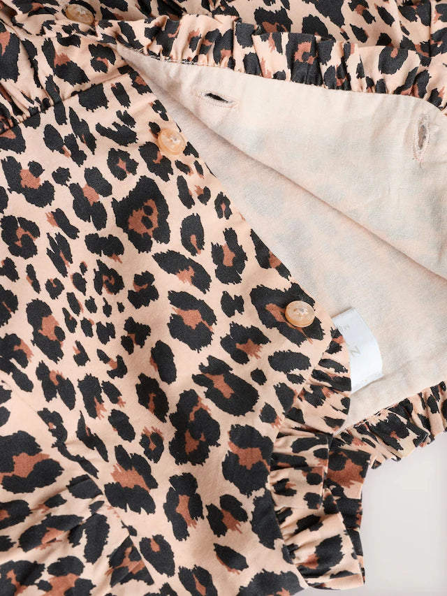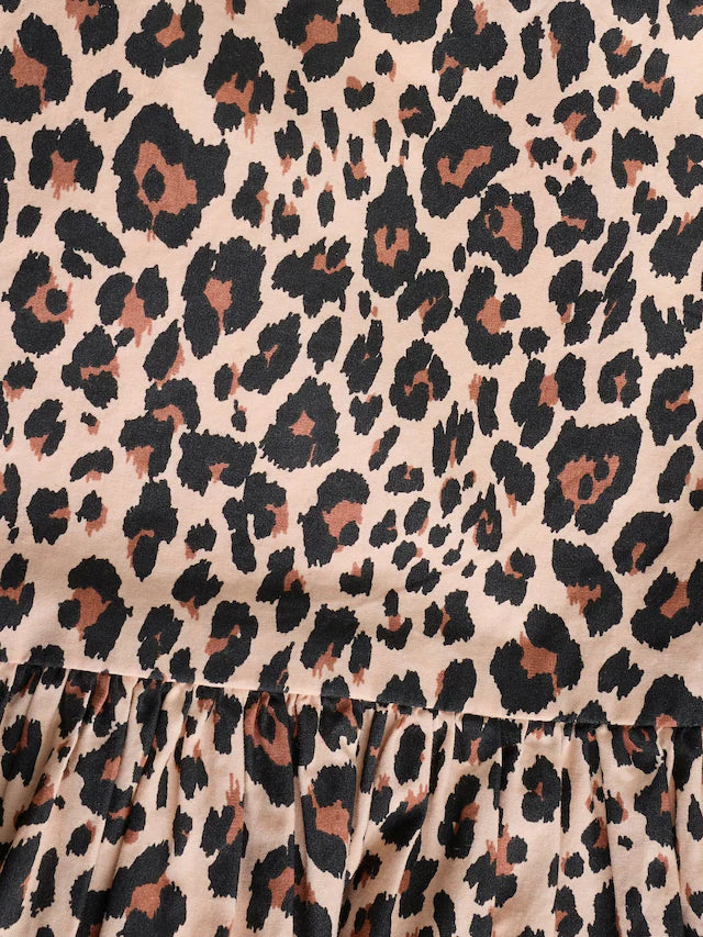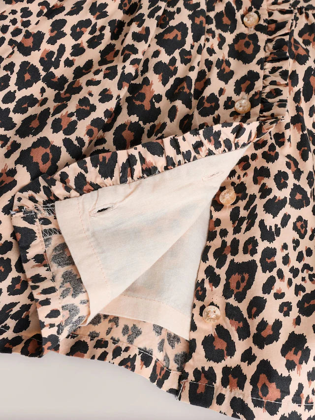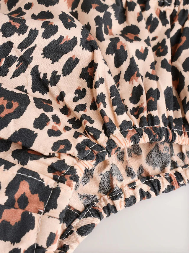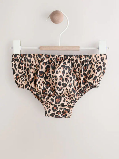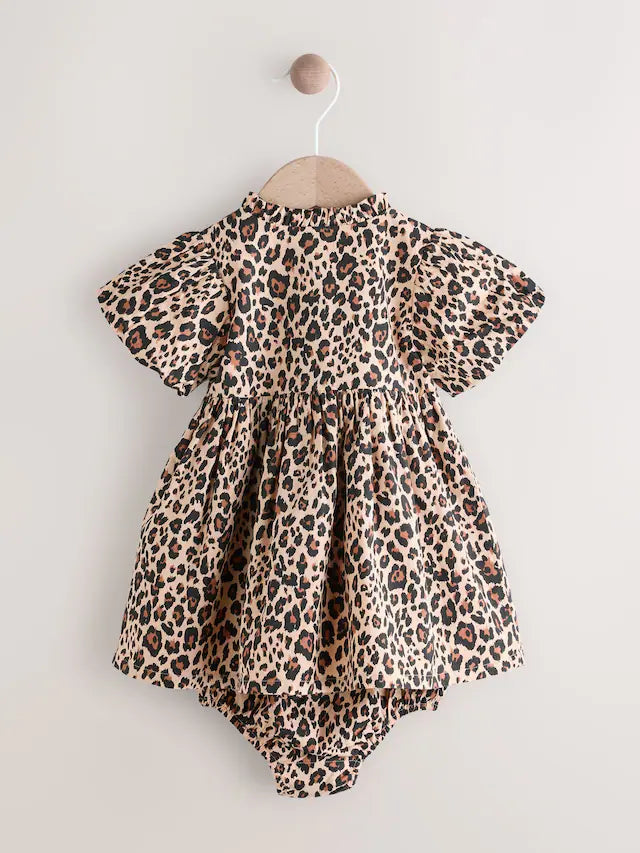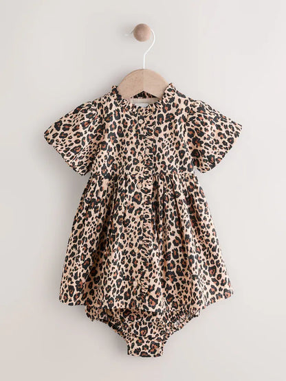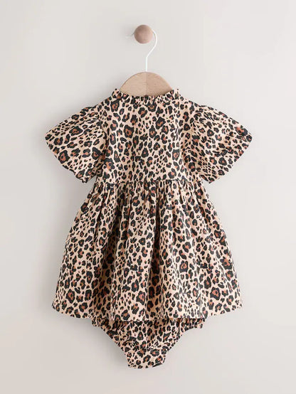 |BabyGirl| Conjunto De Vestido e Calcinha Bloomer Com Estampa De Leopardo Marrom Bege Para Bebê (0 meses a 2 anos)