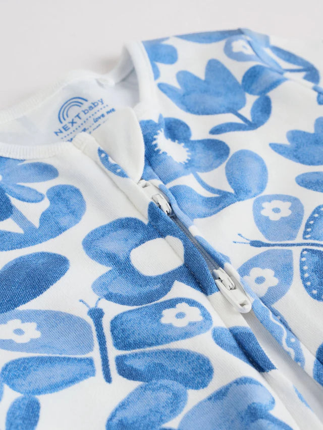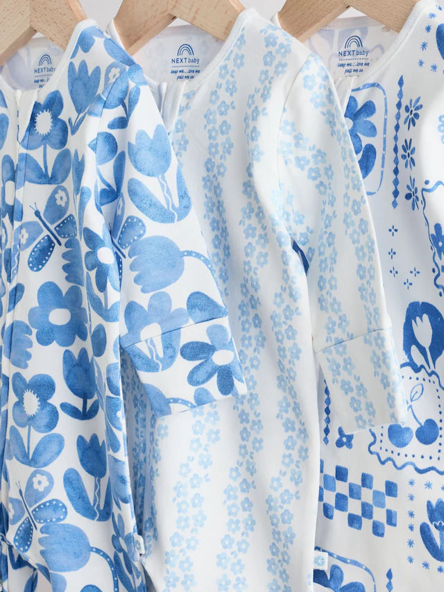|BabyGirl| Macacão De Dormir Sem Pé Para Bebê, Azul, 100% Algodão, Com Zíper Bidirecional, pacote com 3 (0 meses a 3 anos)