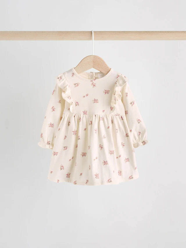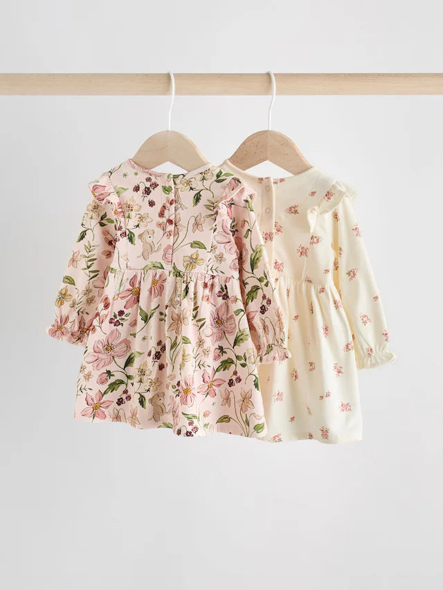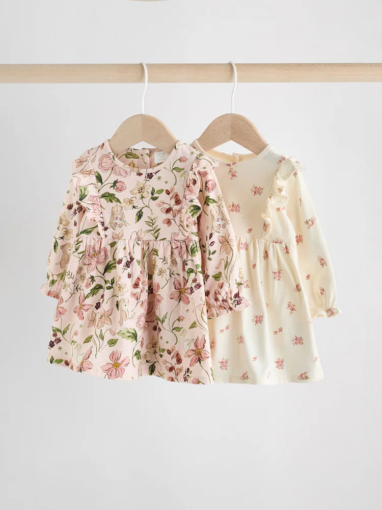 |BabyGirl| Vestidos De Malha Para Bebês Com Estampa Floral Rosa/Creme, Pacote Com 2 (0 meses a 2 anos)