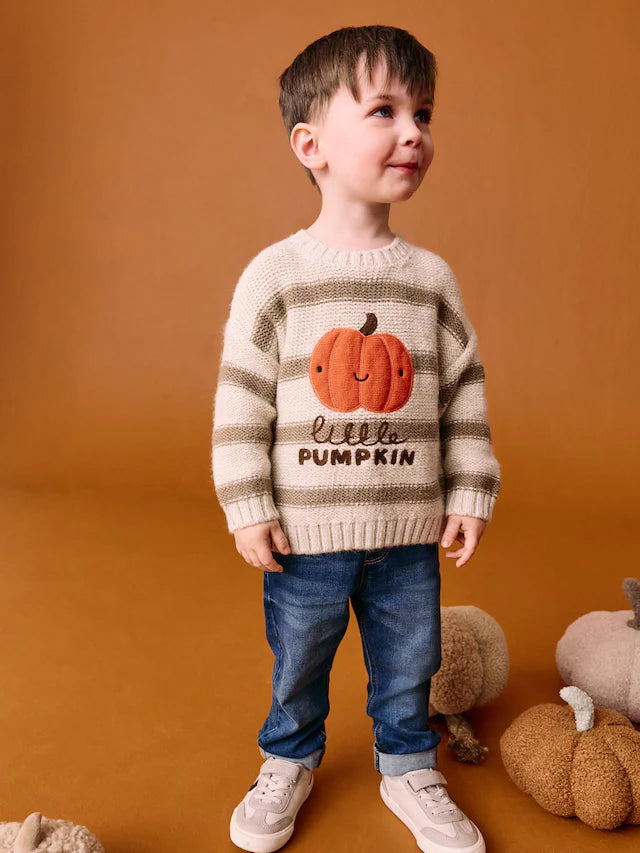 |Boy| Blusa De Gola Redonda De Tricô De Halloween Com Abóbora Neutra (3 meses a 7 anos)