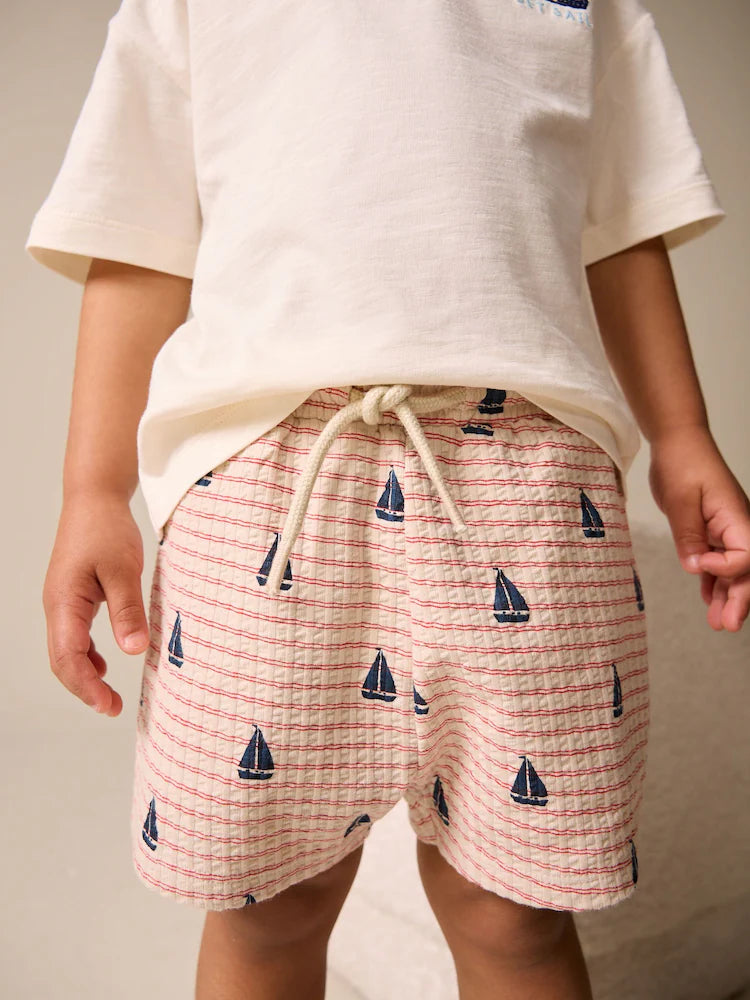 |Boy| Conjunto De Camiseta De Manga Curta e Shorts Com Bordado De Barco Branco (3 meses a 7 anos)