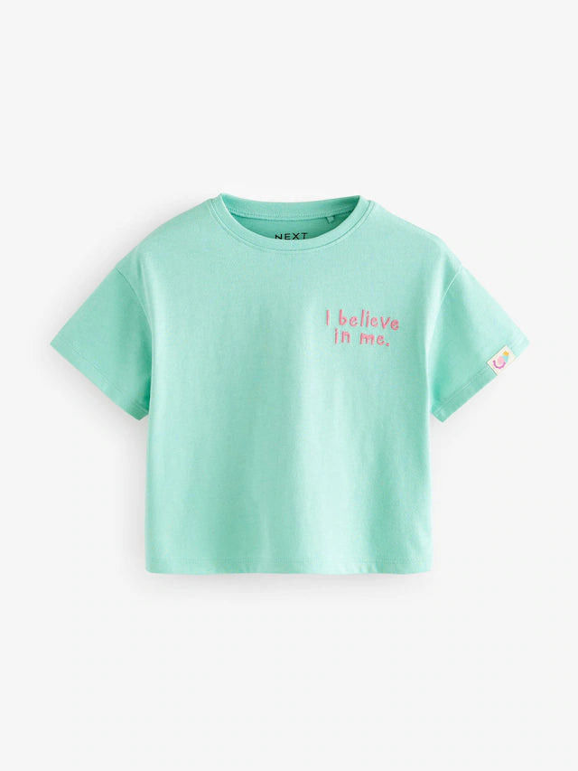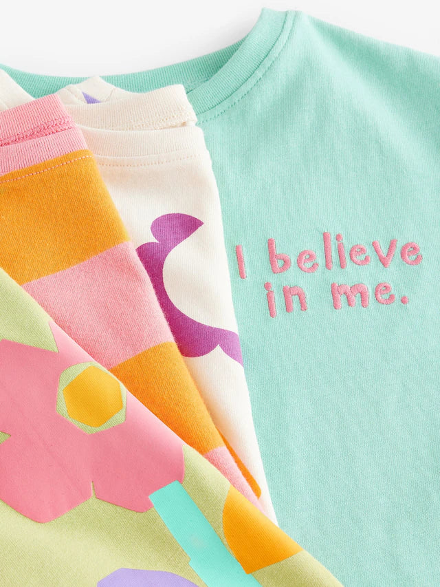 |Girl| Camisetas De Manga Curta Azul Turquesa 100% Algodão, Pacote Com 4 (3 meses a 7 anos)