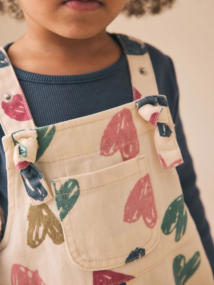 |Girl| Conjunto De Jardineira e Camiseta Cor Creme Com Estampa De Coração (3 meses a 7 anos)