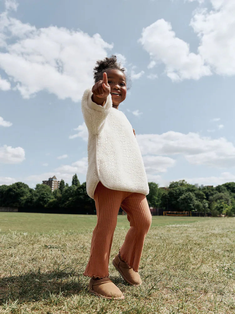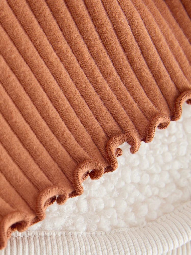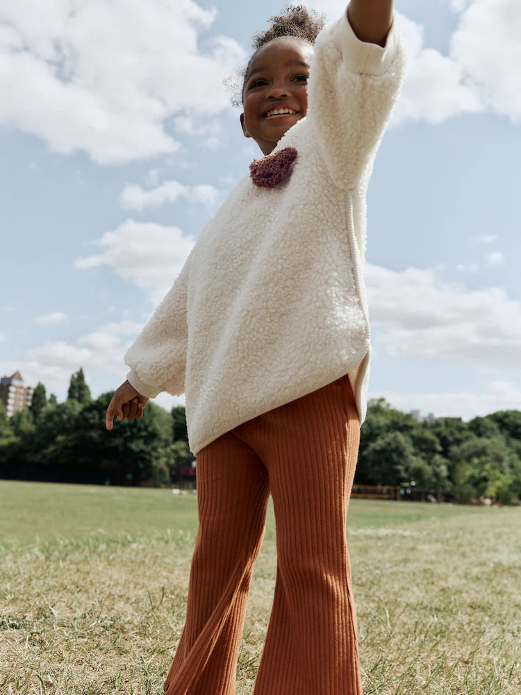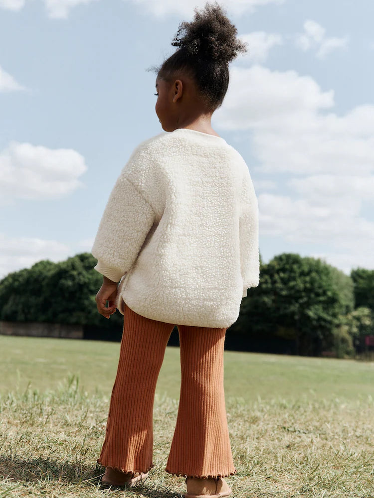 |Girl| Conjunto De Moletom e Legging Flare Teddy Borg Creme (3 meses a 7 anos)