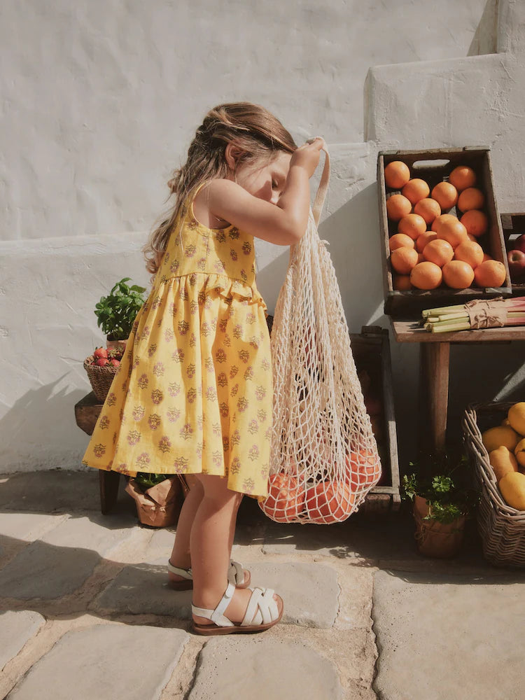 |Girl| Vestido Peplum Sem Mangas Com Estampa Xilogravura Amarela (3 meses a 8 anos)