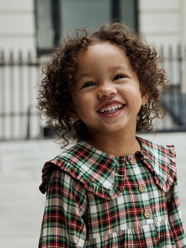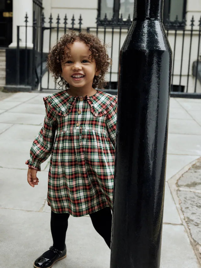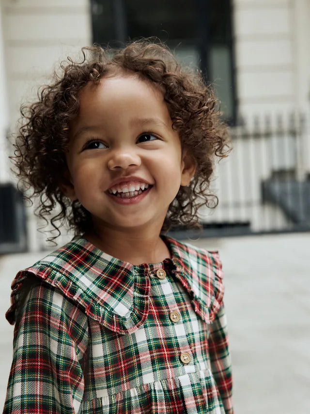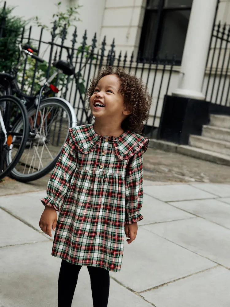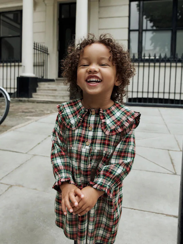 |Girl| Vestido Xadrez Vermelho/Verde Com Gola Longa e Manga Comprida (3 meses a 8 anos)