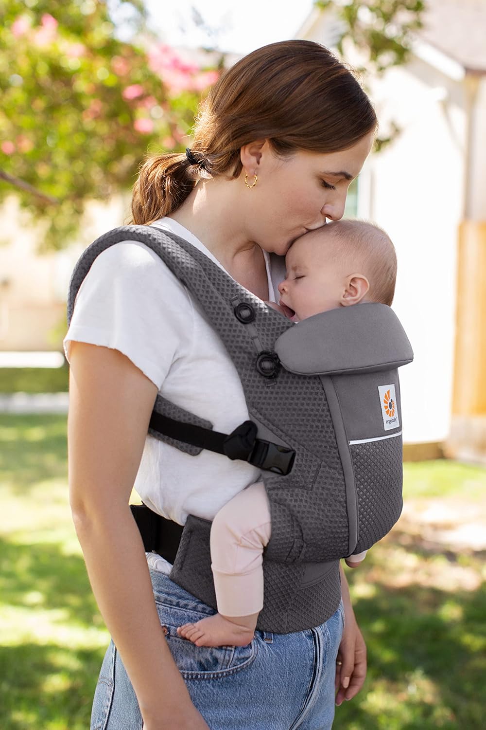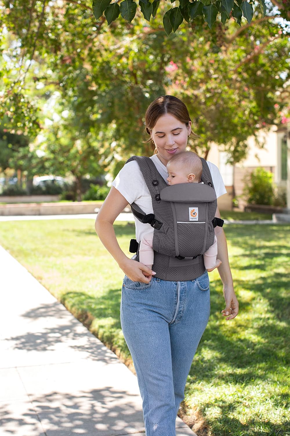 Ergobaby Adapt Carrier para recém-nascidos desde o nascimento, malha SoftFlex de 3 posições, posição ergonômica de transporte para frente e para trás do bebê, cinza grafite