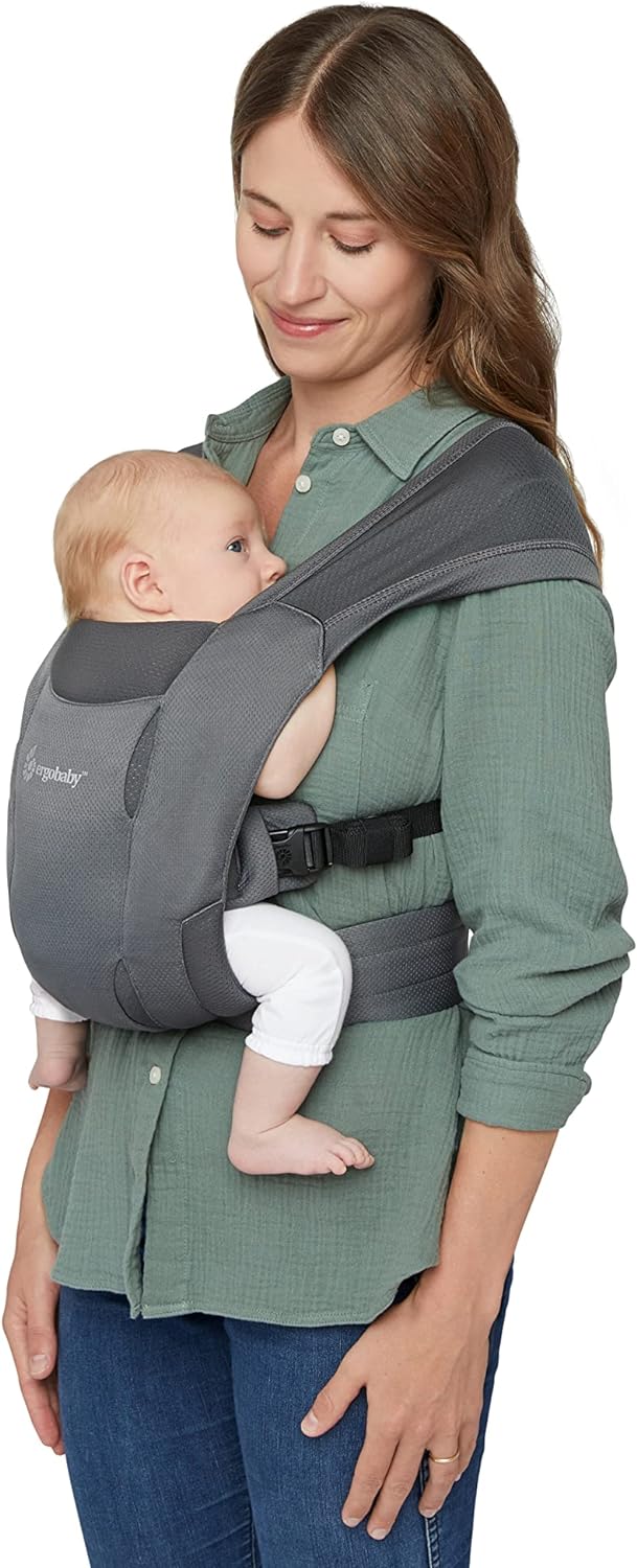 Ergobaby Abrace o portador de bebê ergonômico de malha de ar macio para recém-nascidos desde o nascimento, portador de barriga ergonômico de 2 posições, preto lavado