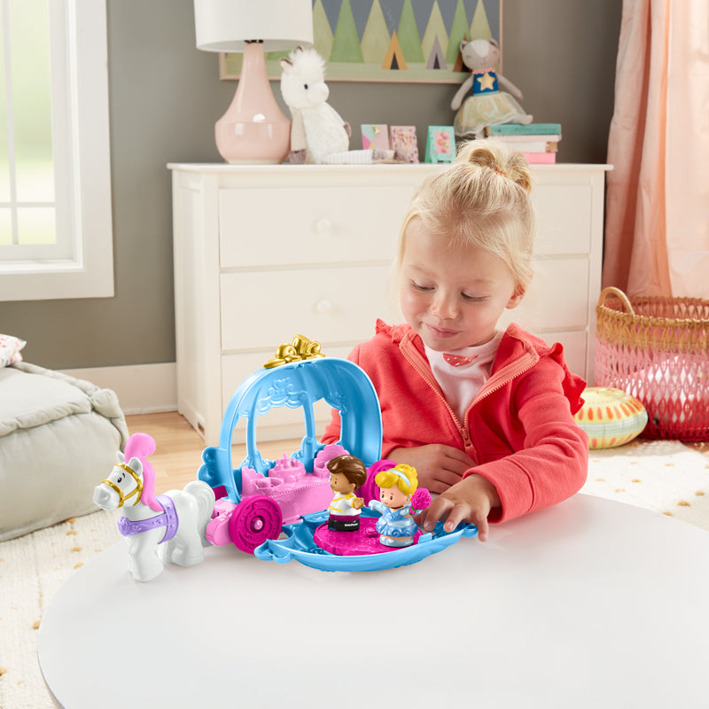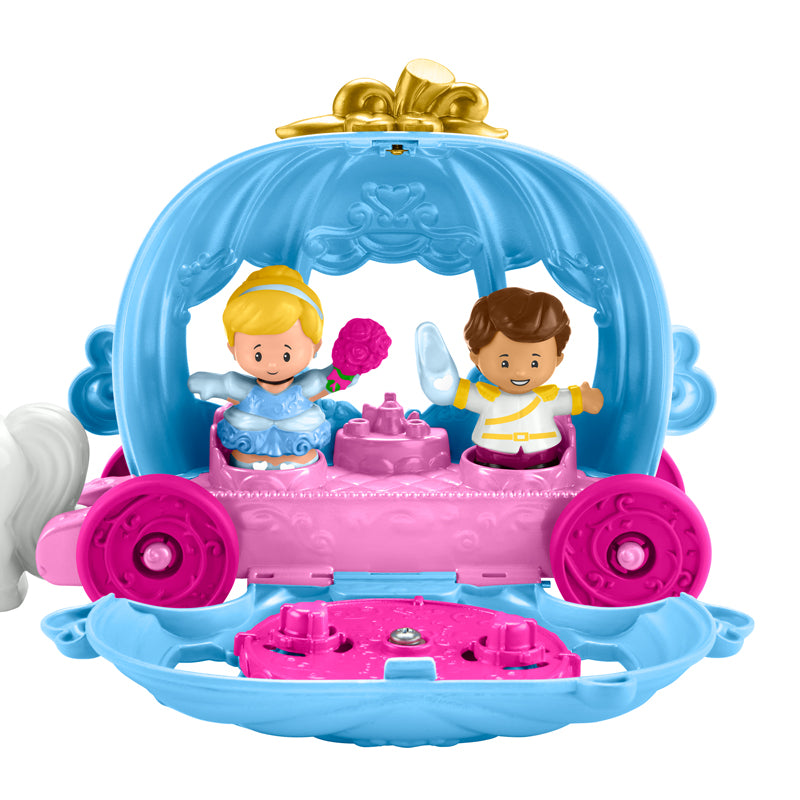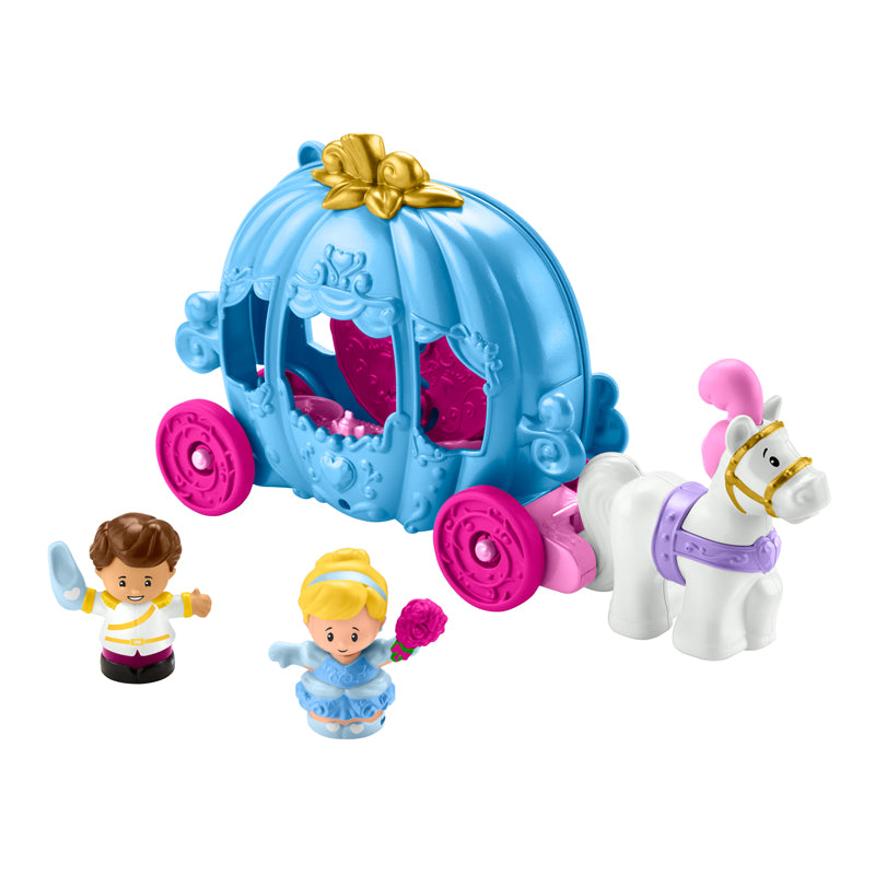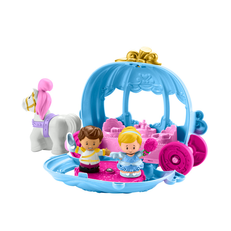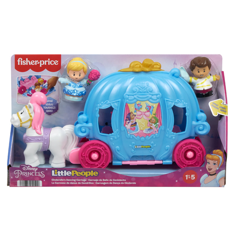 - Os jovens fãs da Disney podem reviver seus momentos favoritos do filme e imaginar novos, com este conjunto de carruagem dançante da Princesa Cinderela da Disney da Little People®.