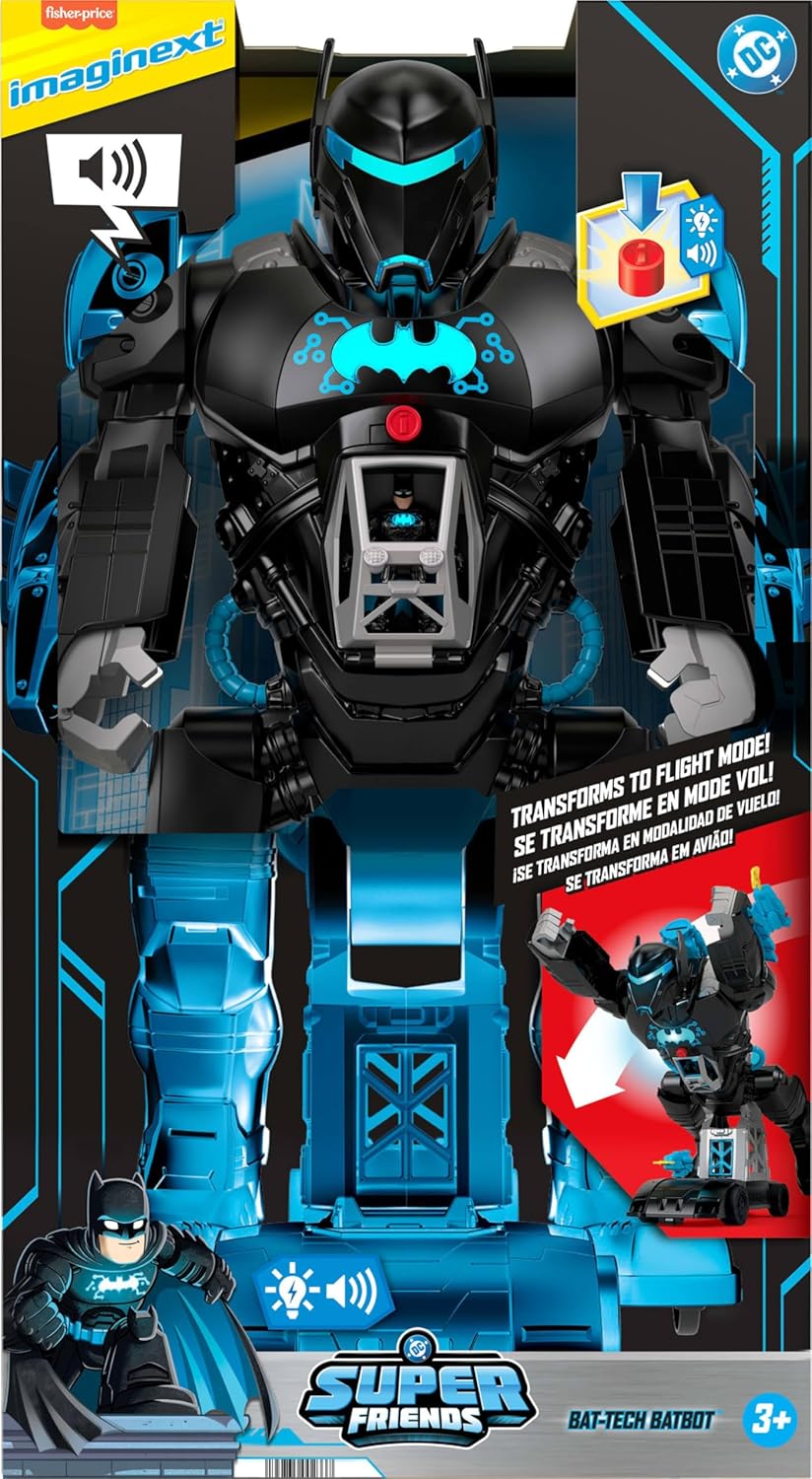 Fisher-Price Imaginext DC Super Friends Bat-Tech Batbot, robô Batman transformável 2 em 1 com luzes e sons para crianças de 3 a 8 anos, HBV67