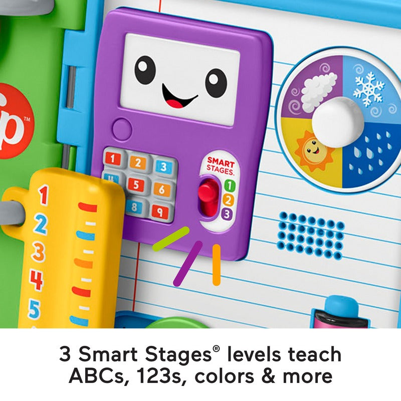 À medida que pequenas mãos exploram todas as atividades ocupadas, os níveis de aprendizagem do Smart Stages® apresentam o alfabeto, números, formas, cores e muito mais com sons, luzes e frases divertidas de canções.